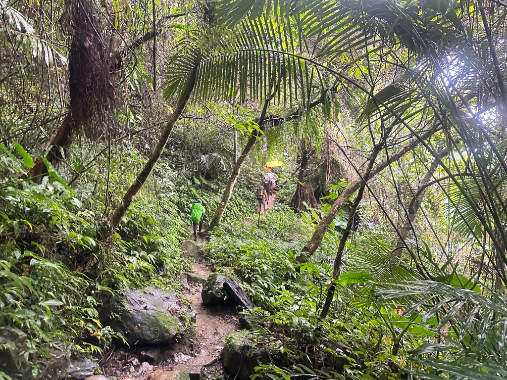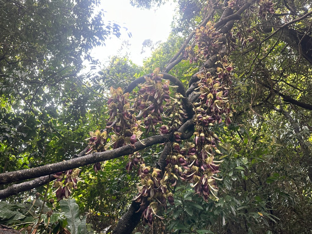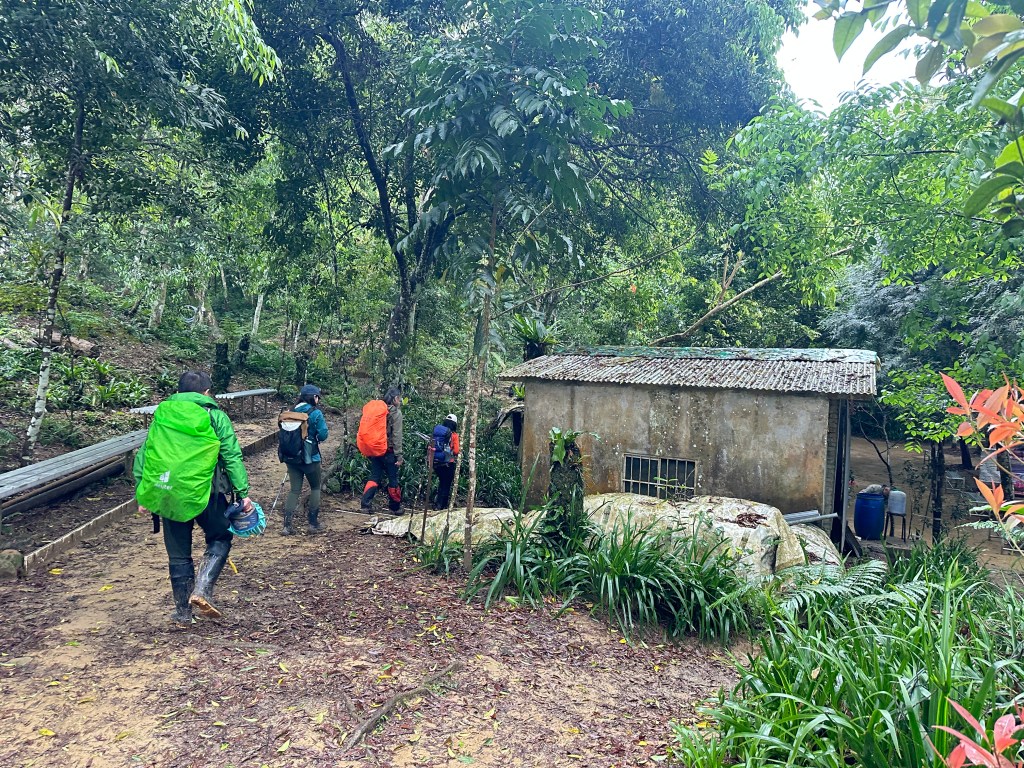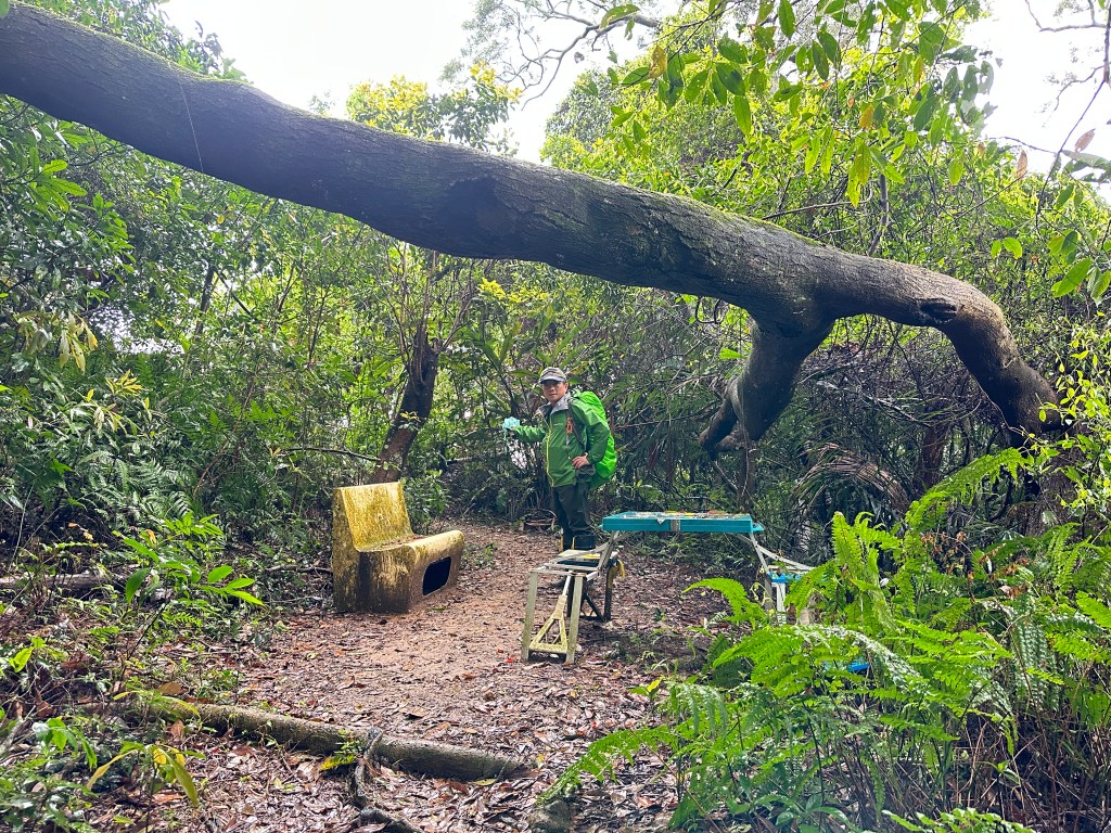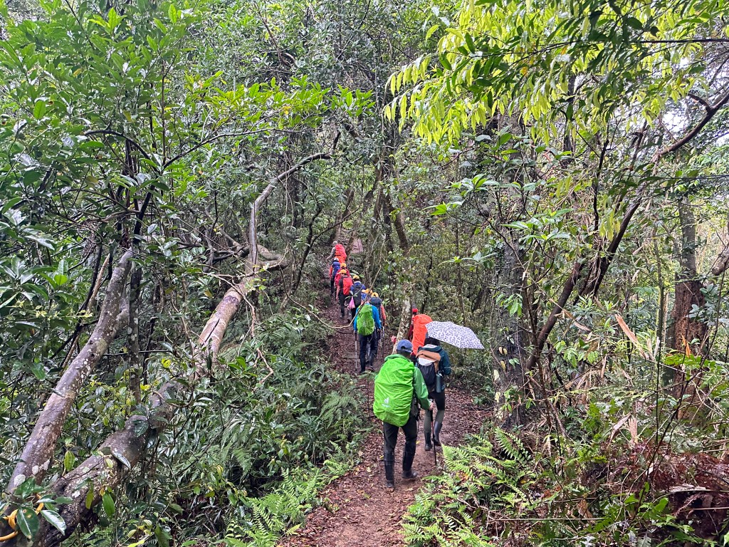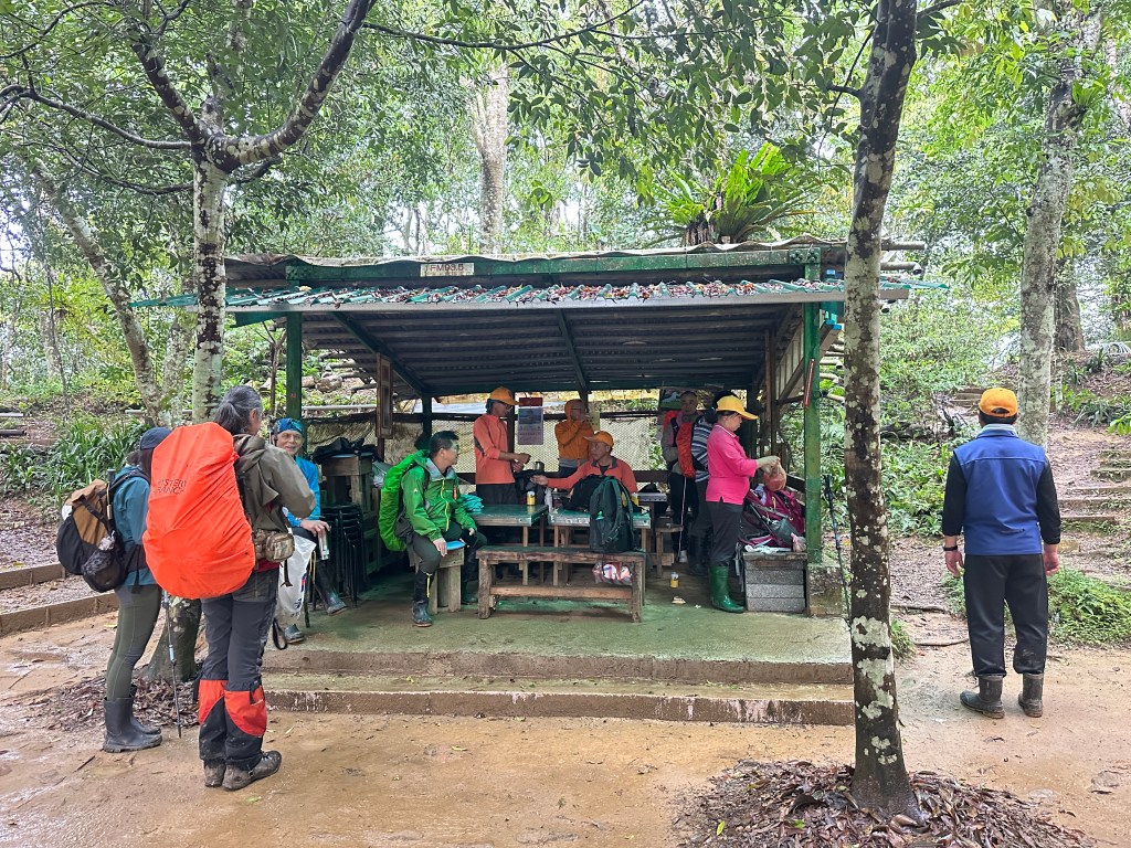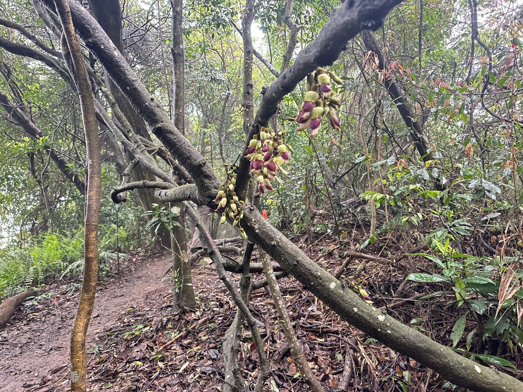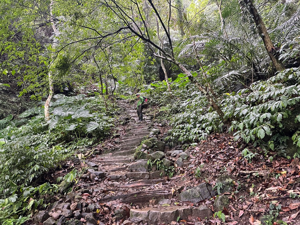 接著,就由鐮刀隊彭帥帶領我們一路繞出不少O型路線,沒想到?溪洲山也能這樣走?在接近溪洲山前有出現一些血藤,但連兩日的大雨,已經將大半的血藤給打落在地!一行人走到溪石亭午餐,大休了2小時(10:19-12:27)。