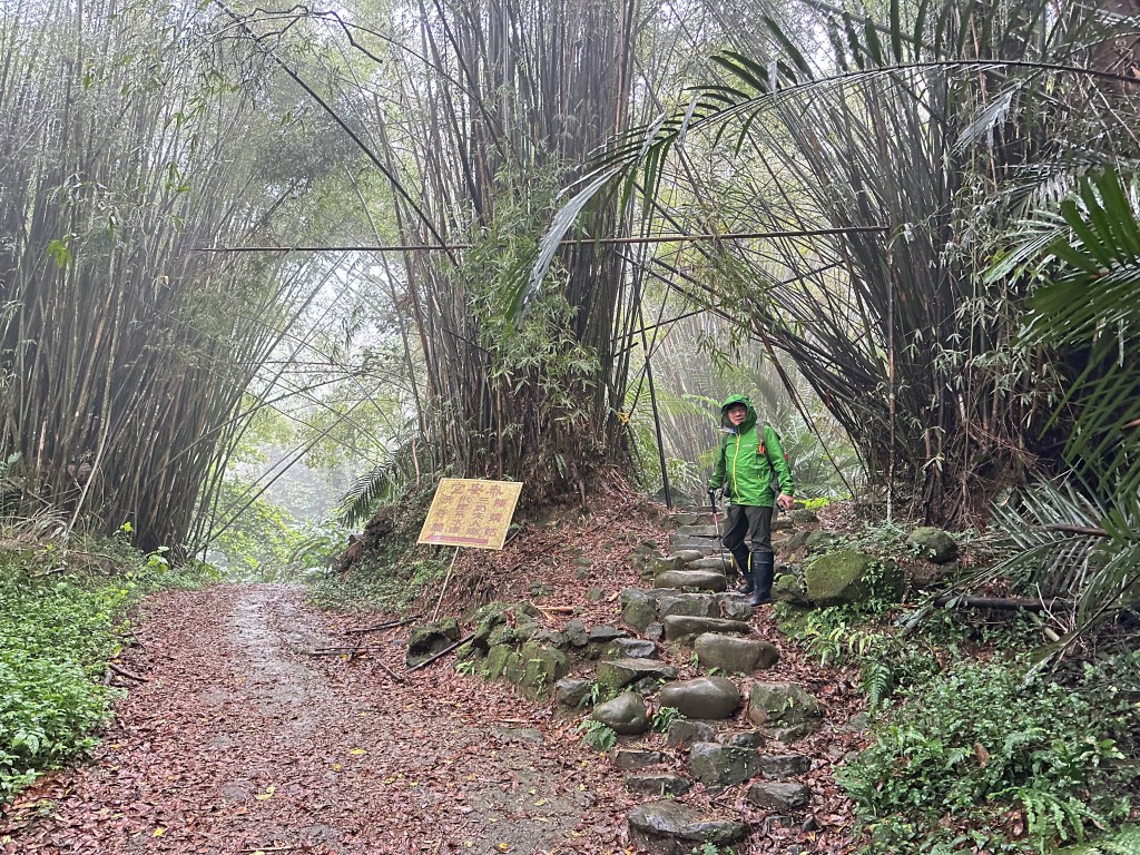 抵達到集合地點,也就是長壽閣旁空地停車場,鐮刀隊劉隊長說:今天沒有下雨啊!就只是霧水!好吧,我在想:如果霧水不退,路徑濕滑,那就上去泡泡茶,縮短行程輕鬆行。沒想到,溪洲山這山區的路徑雖濕不滑!石頭已被踩踏到極光亮,沙石路徑紮實不沽溜。