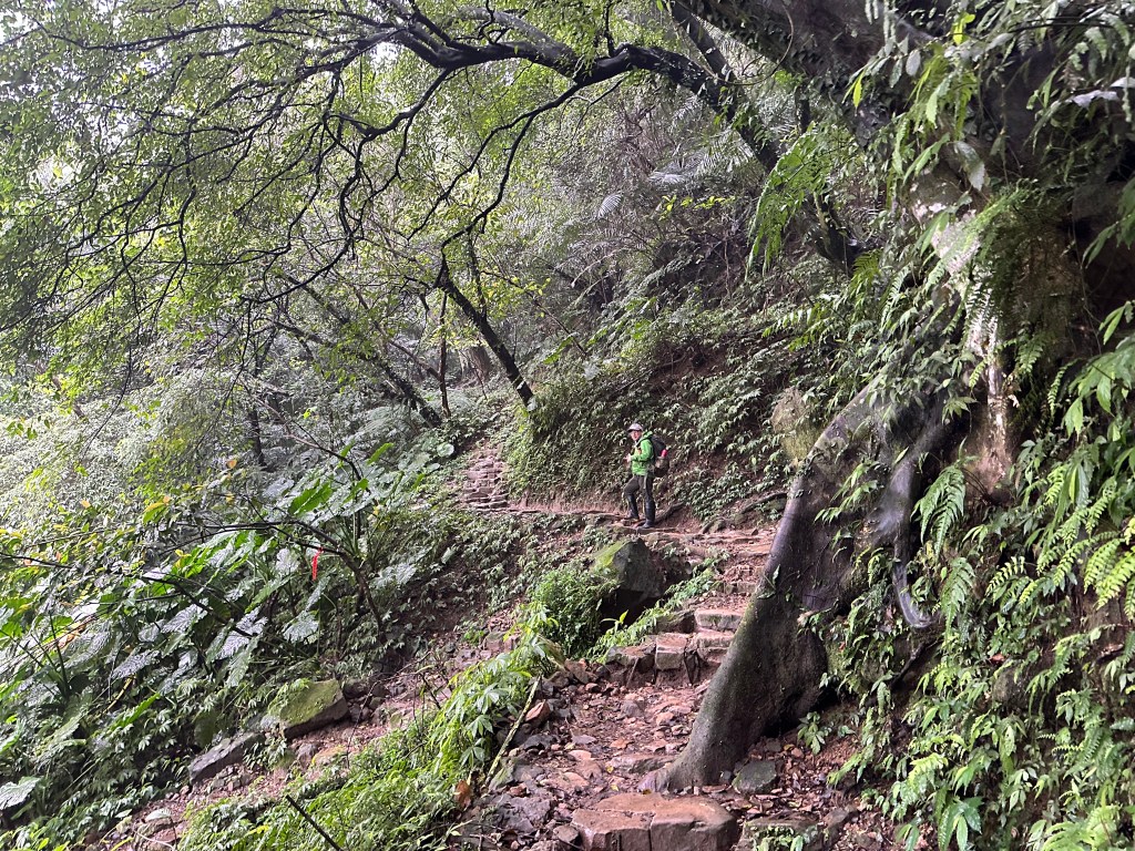 今天的行走過程中,印象特深刻的一段,就是過了相思嶺後,通過時鐘尾仔後山徑陡峭一段再度下到鞍部,接著就由鞍部的H310m直接陡上到H475m的稜線路上,算得上是今天的大魔王!