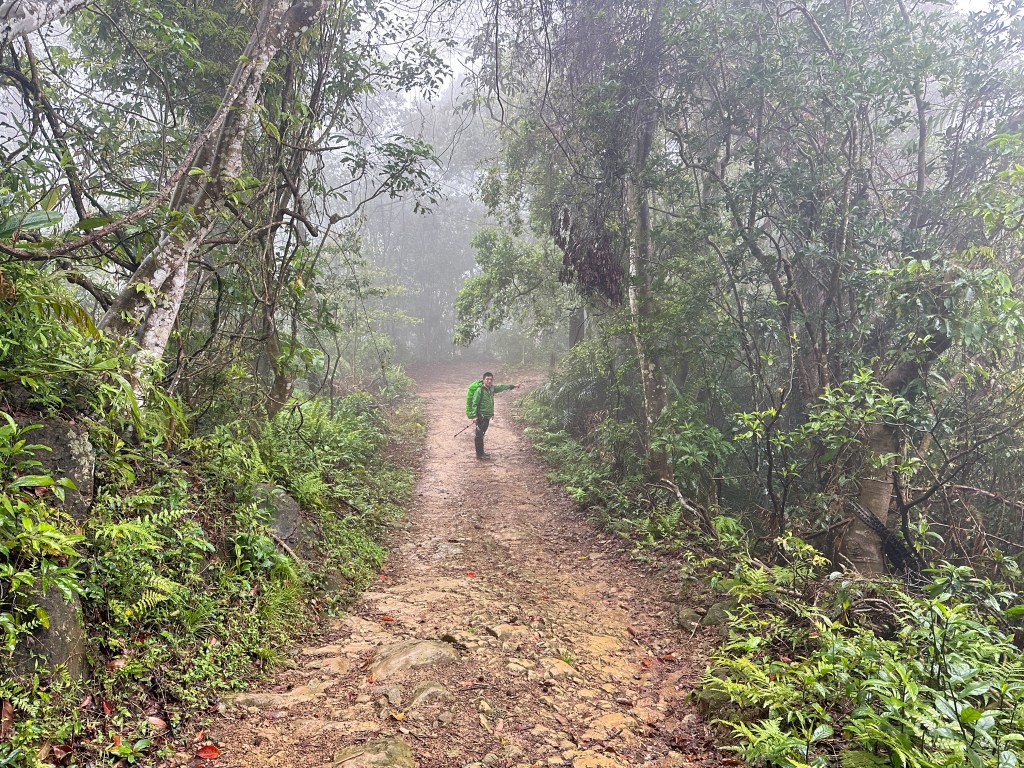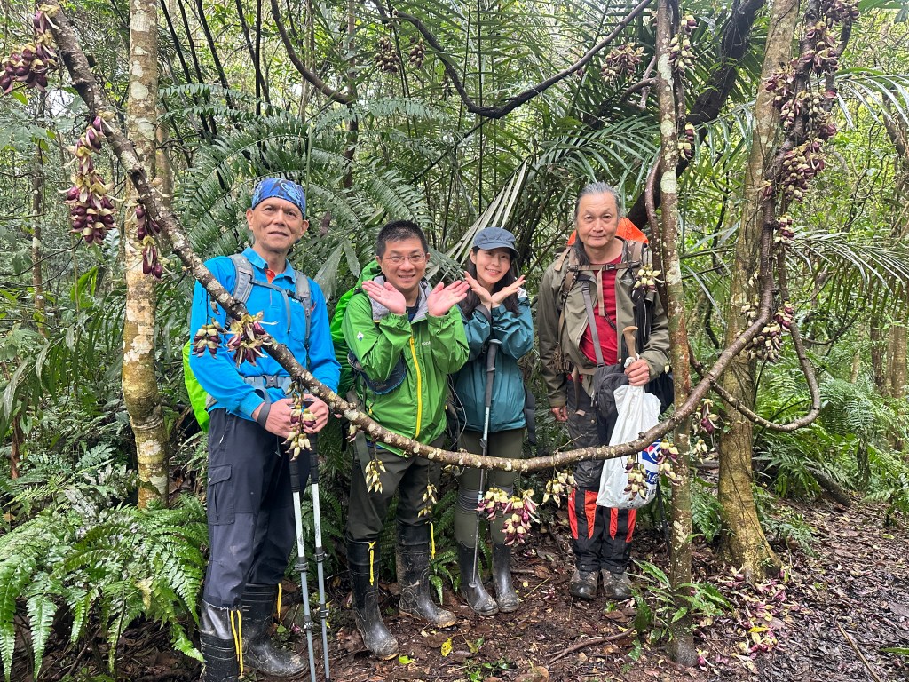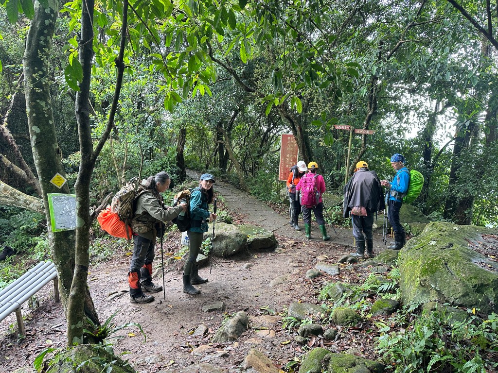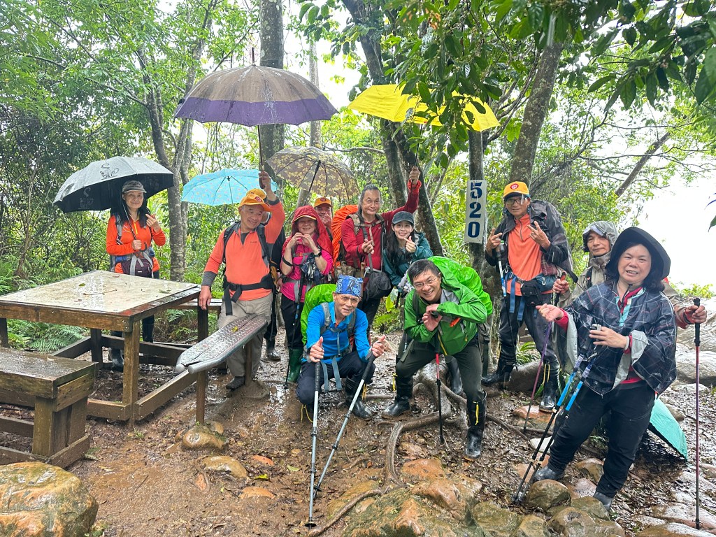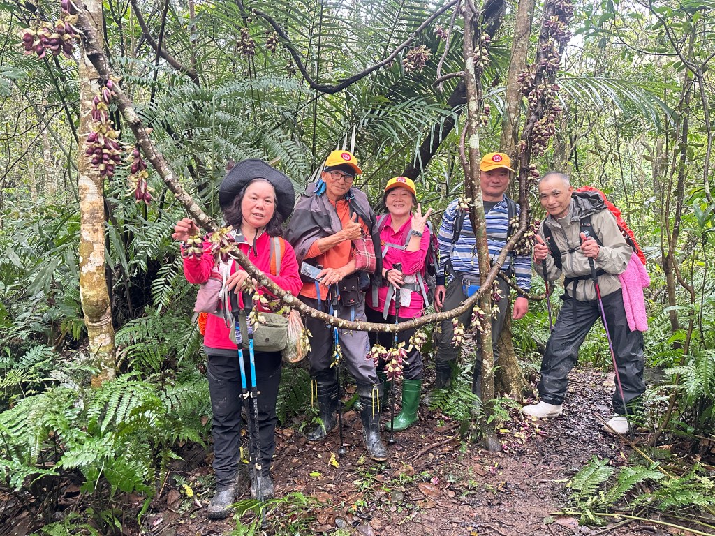 還有,沒想到今天"霧水"不停,溪洲山沿途居然行走的山友絡繹不絕,真令人驚訝!應該就是因為這一區的山徑特性,即使潮濕也不會滑動,蠻奇怪的?還得親自走過才能體會。行程過程中有人看到Smile叫她花蝴蝶!劉隊長說這麼多年來沒人看到他就認出是鐮刀隊?當然啊!劉隊長你沒有像Smile一樣帶髮箍啊?