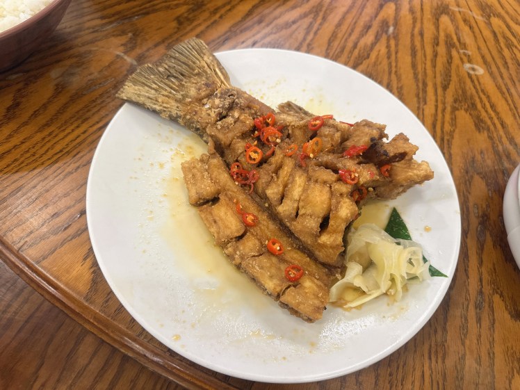 換好裝,大伙一起到佳園活魚餐廳享受活魚三吃。