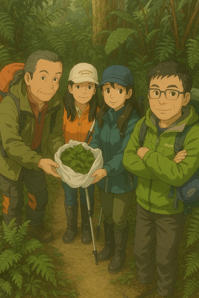 回程,一路上看到隊長夫人劉大嫂一路在摘採野菜?而且也一路看到不少山友也都有在摘採?到底是在摘什麼呢?原來是-過貓!大嫂說,這過只要穿燙再加一些糊麻醬就是超美味!今天真的受教長知識了!Morning及Link哥兩人也摘了不少!回家時都忘了跟大嫂或Link哥要一些,回家試試到底多美味?