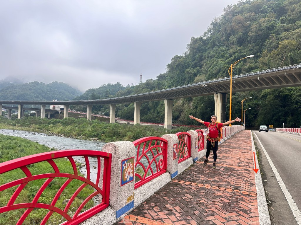 投影片:Hank回頭追上我們了!哈哈,今天就是要多蹭一些里程就是!Hank在新石門山。