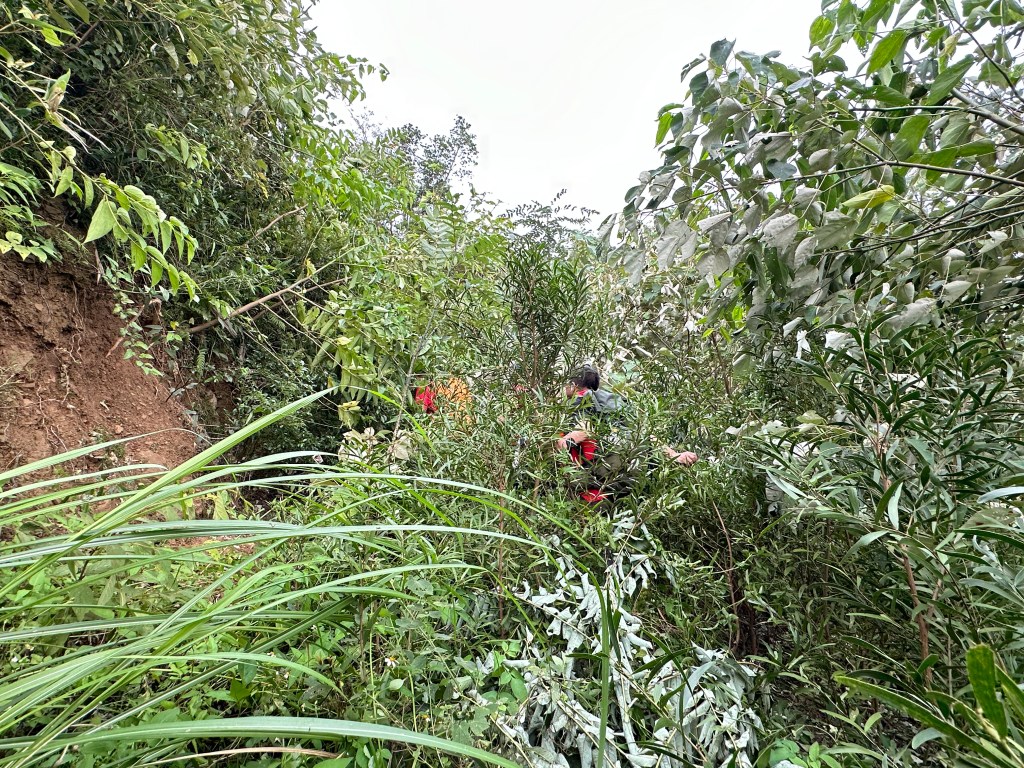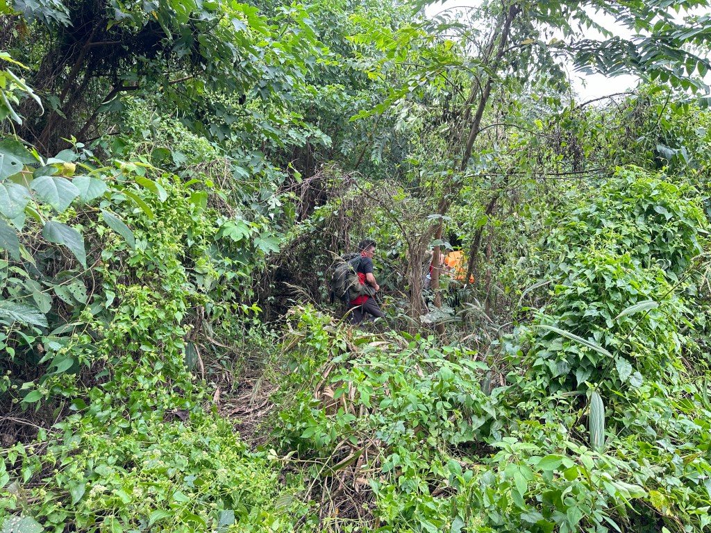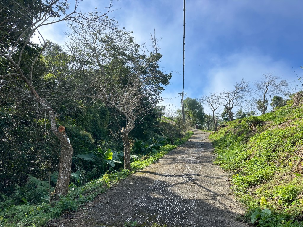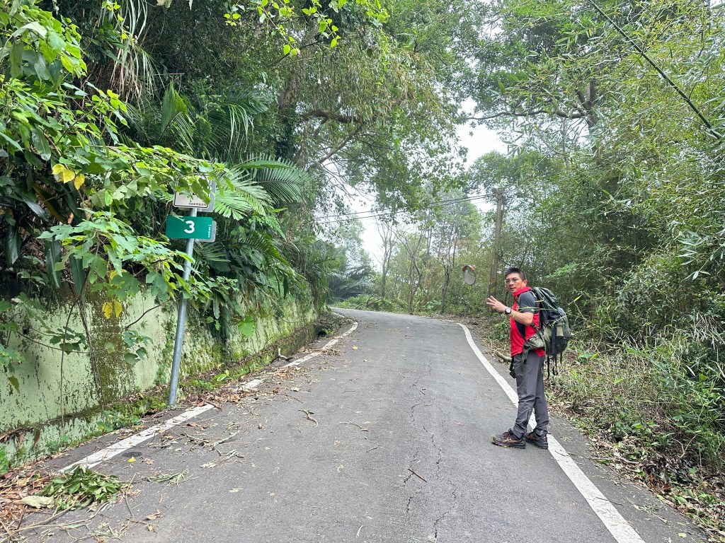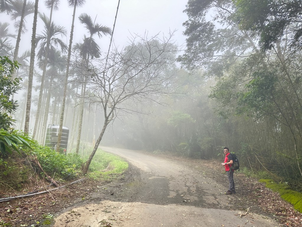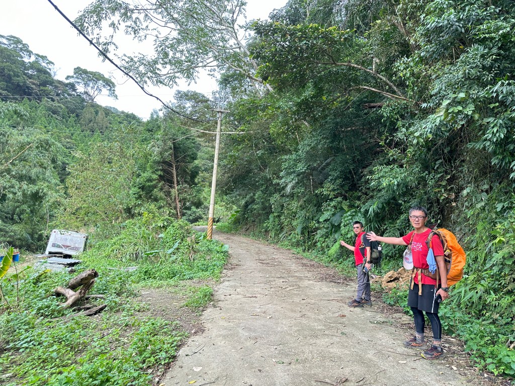 其實這一條產業道路到岔路前400m,就應該陡上接上龍骨古道,這才是樟之細路!在這裡,我們偏離了一小段,但沒想到產業道路到岔路前100m的這一段,颱風過後倒木超級密集,在這裡,Jun砍除了約100m的距離,才讓大伙脫離了阿雜之路。