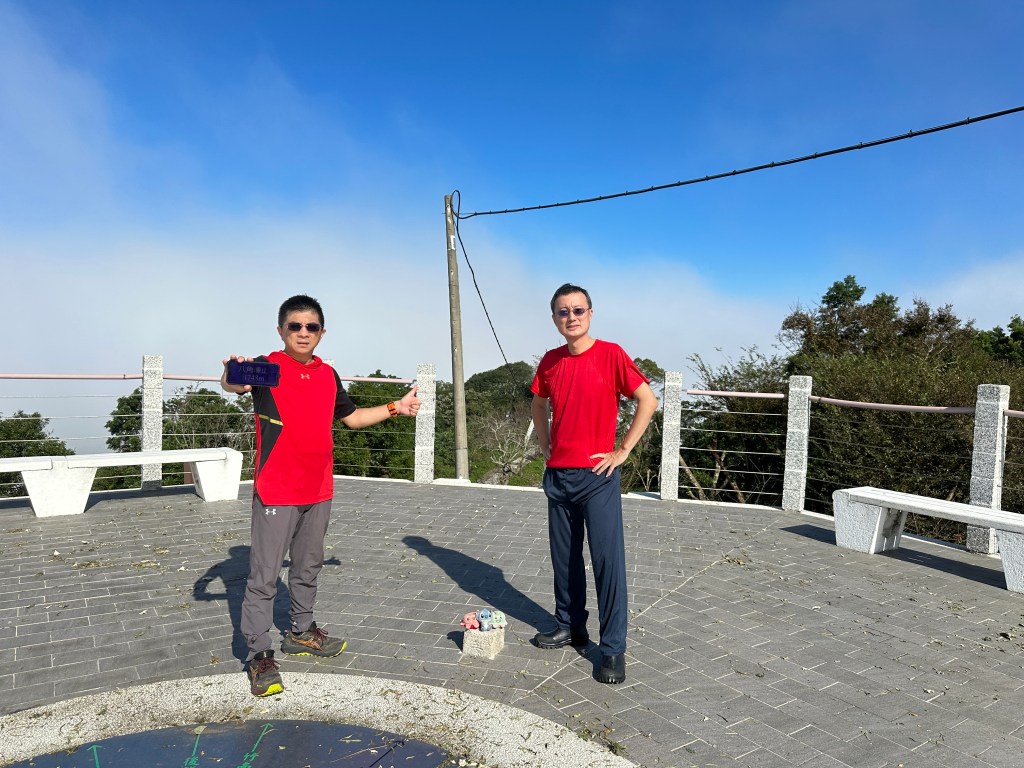 投影片:Hank與Gosen在八角崠山。此時Jun回報離我們還差1K左右的距離。09:15
