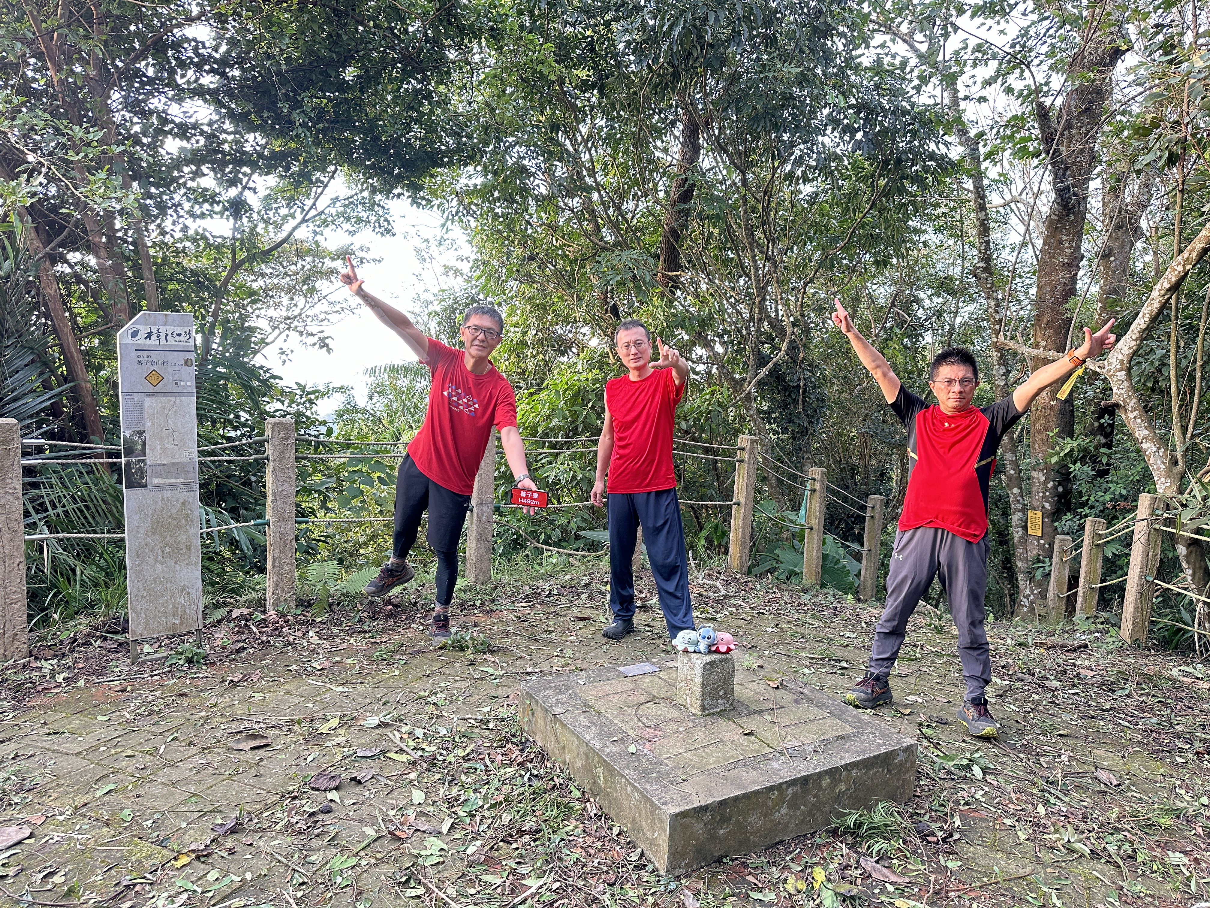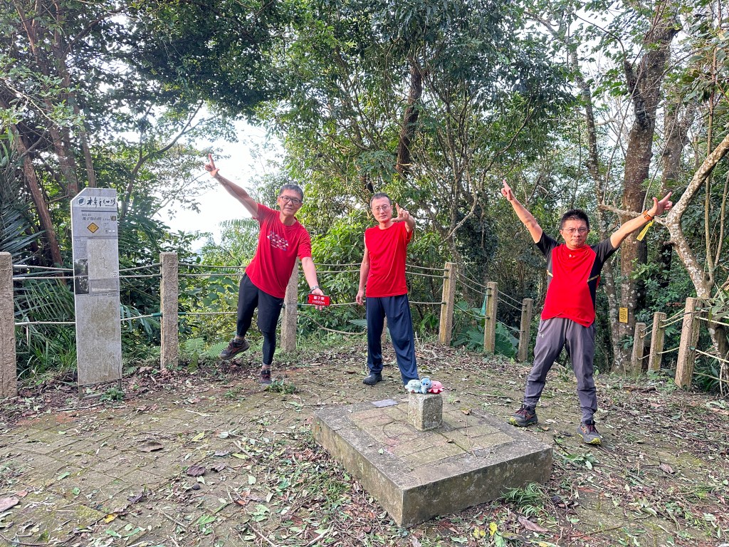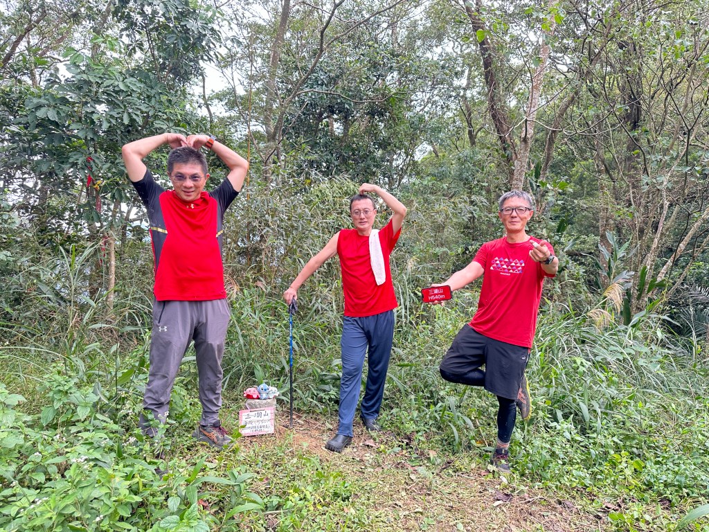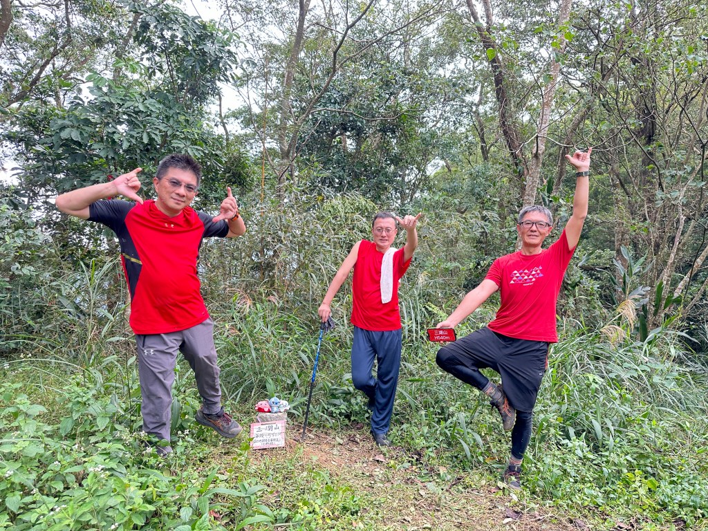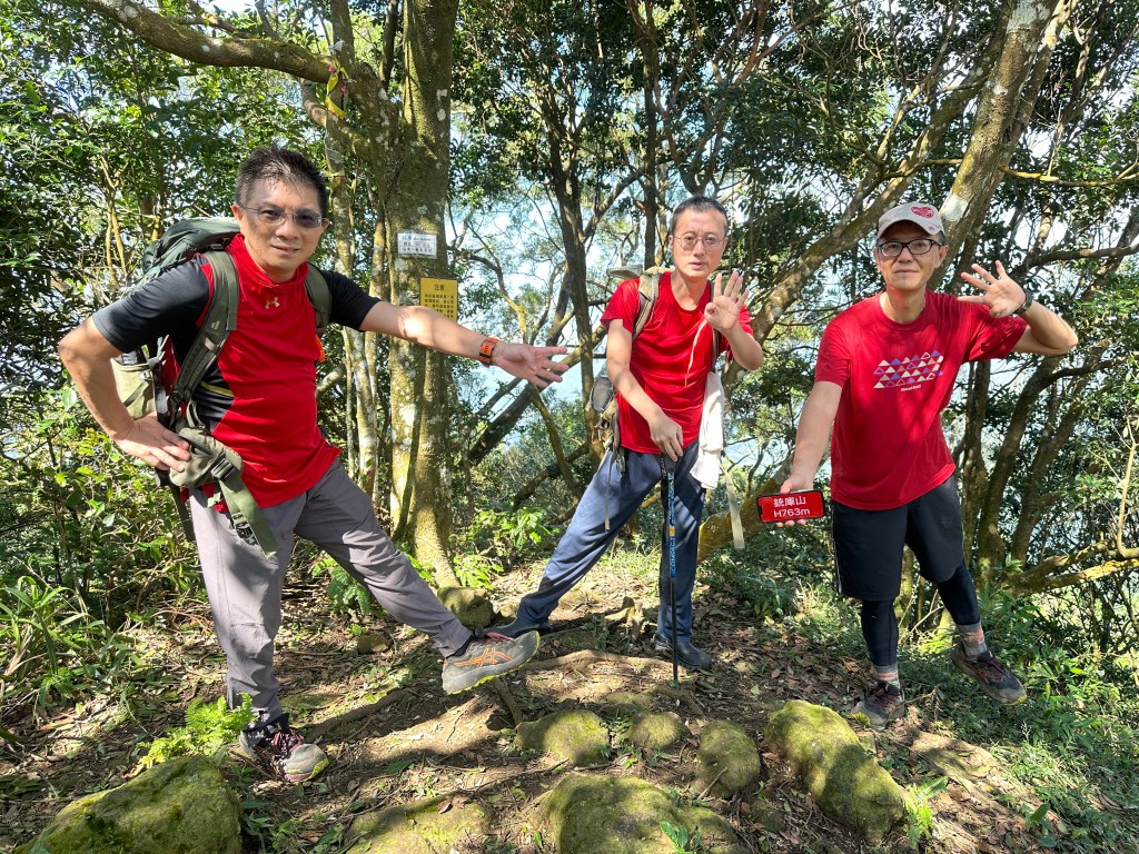 投影片:新田山與我們三位壯丁。新田山,H773m,無基石。