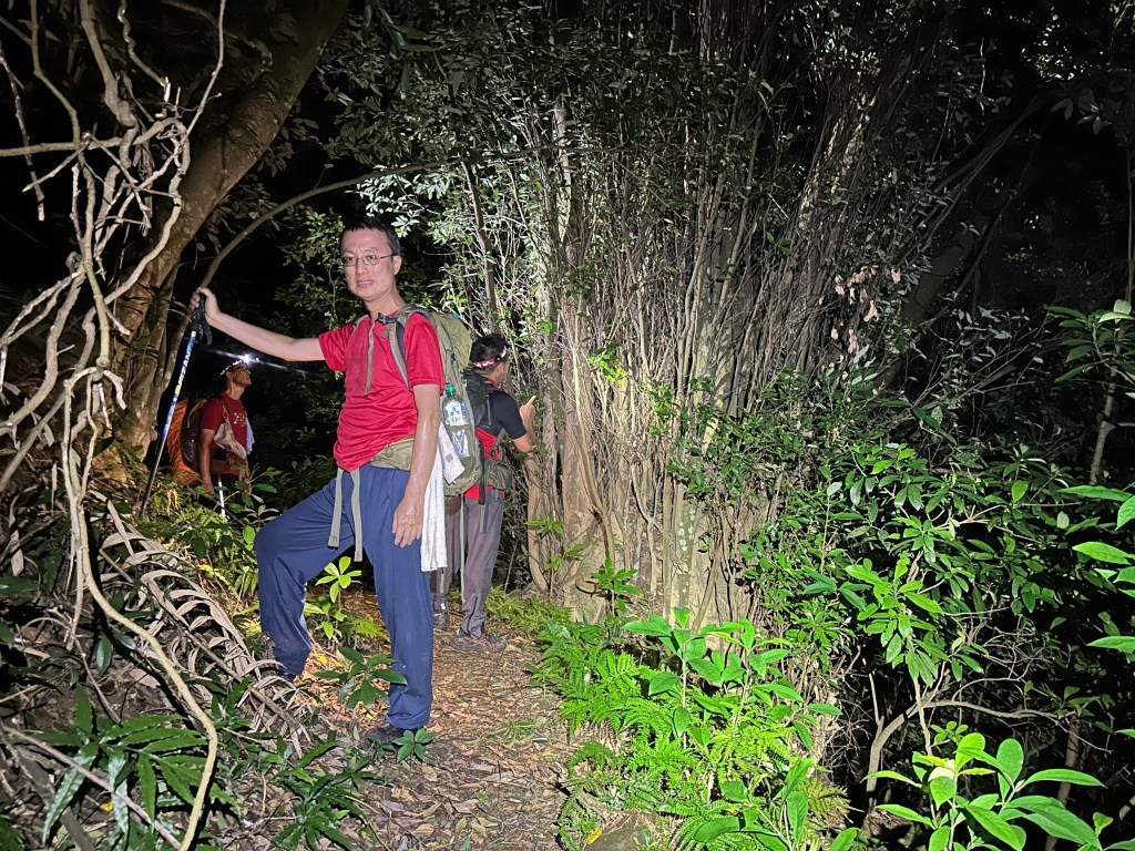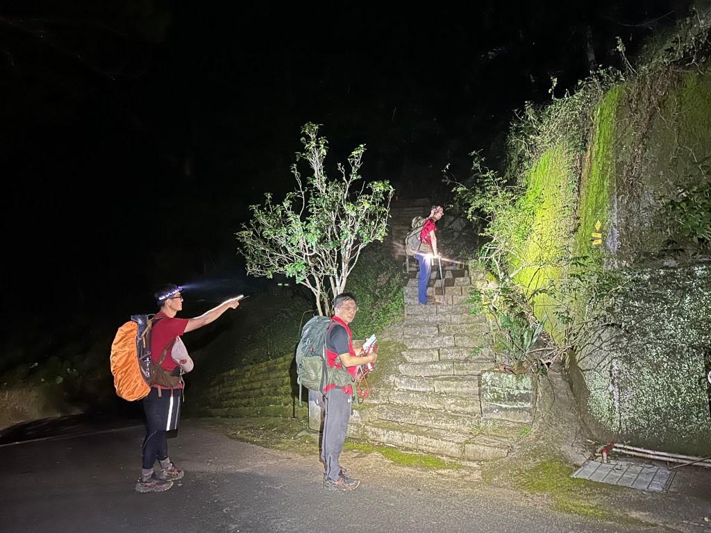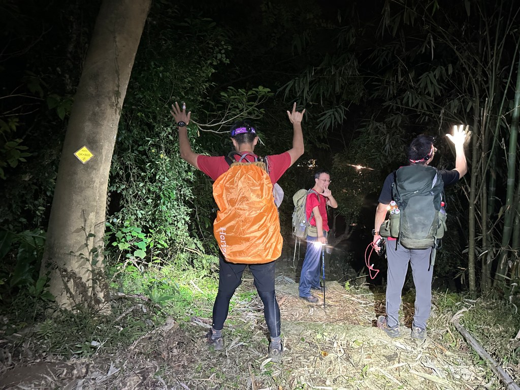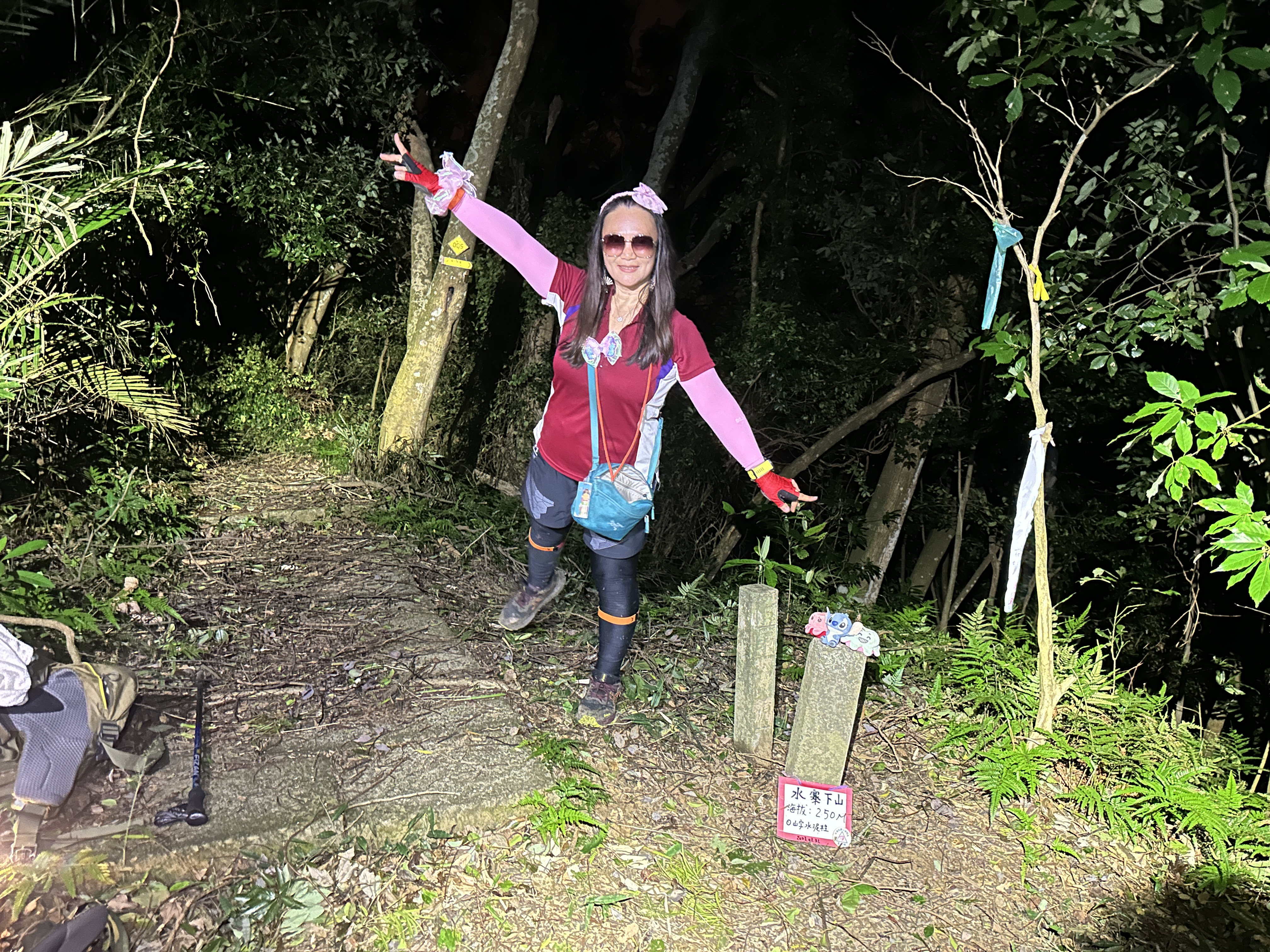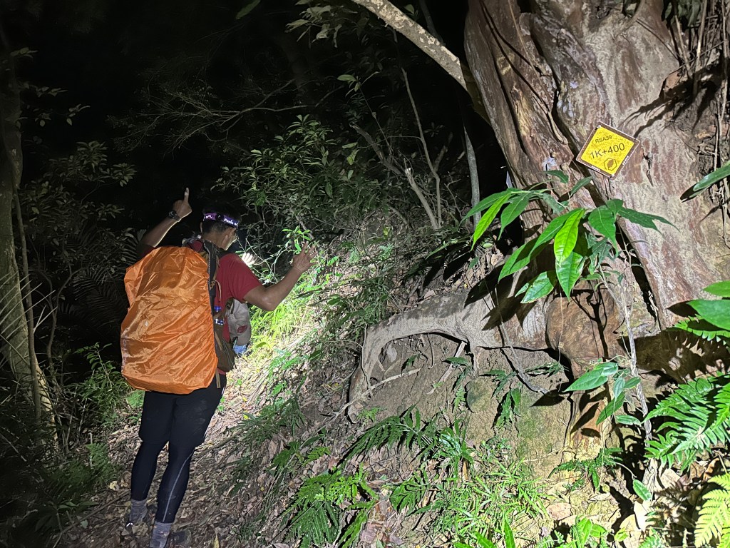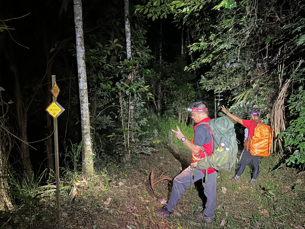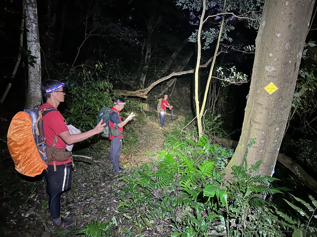 帽盒東山,這一座山,Smile與我去年(2023)走過,登頂前必須在100m距離裡直接陡上約50m,今天放棄!反正天色已黑,我們也在登山口前休息進食約20分鐘,接著,繼續依循樟之細路前往。