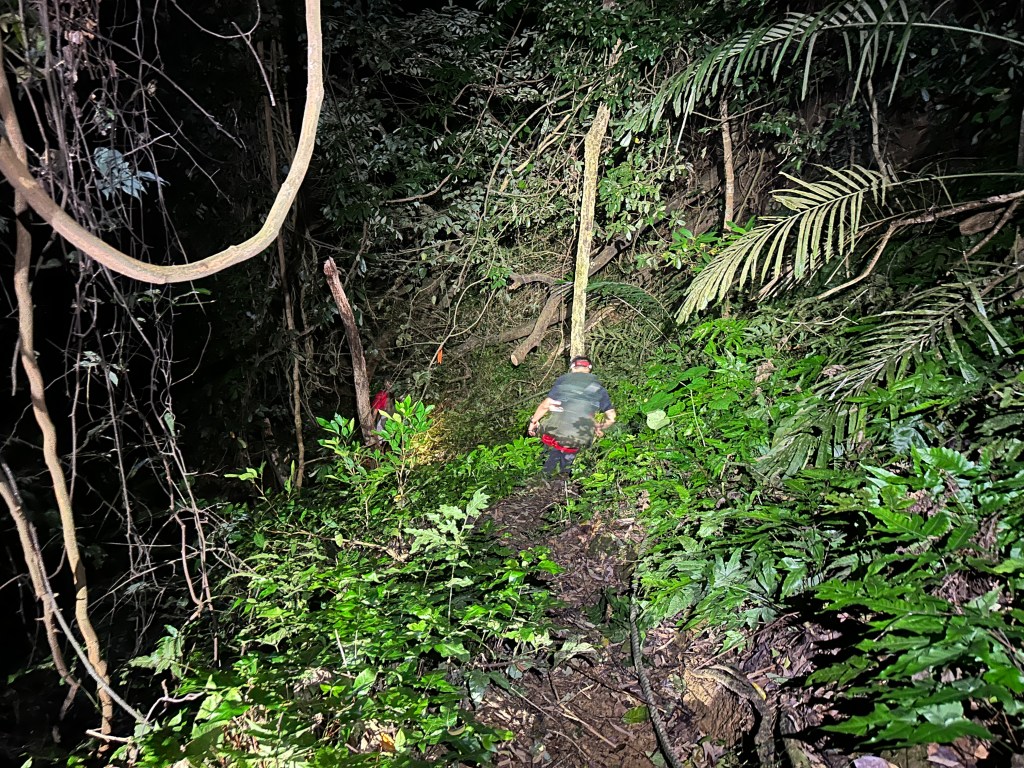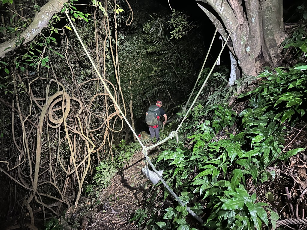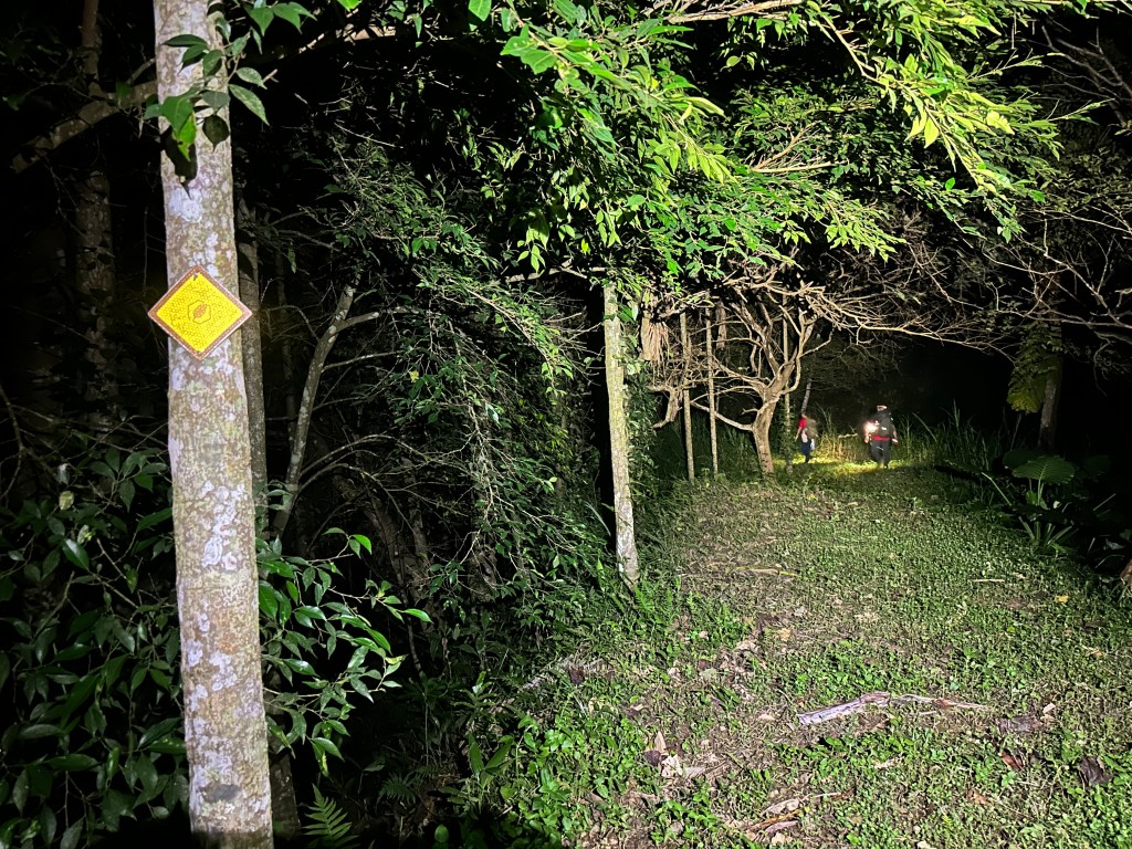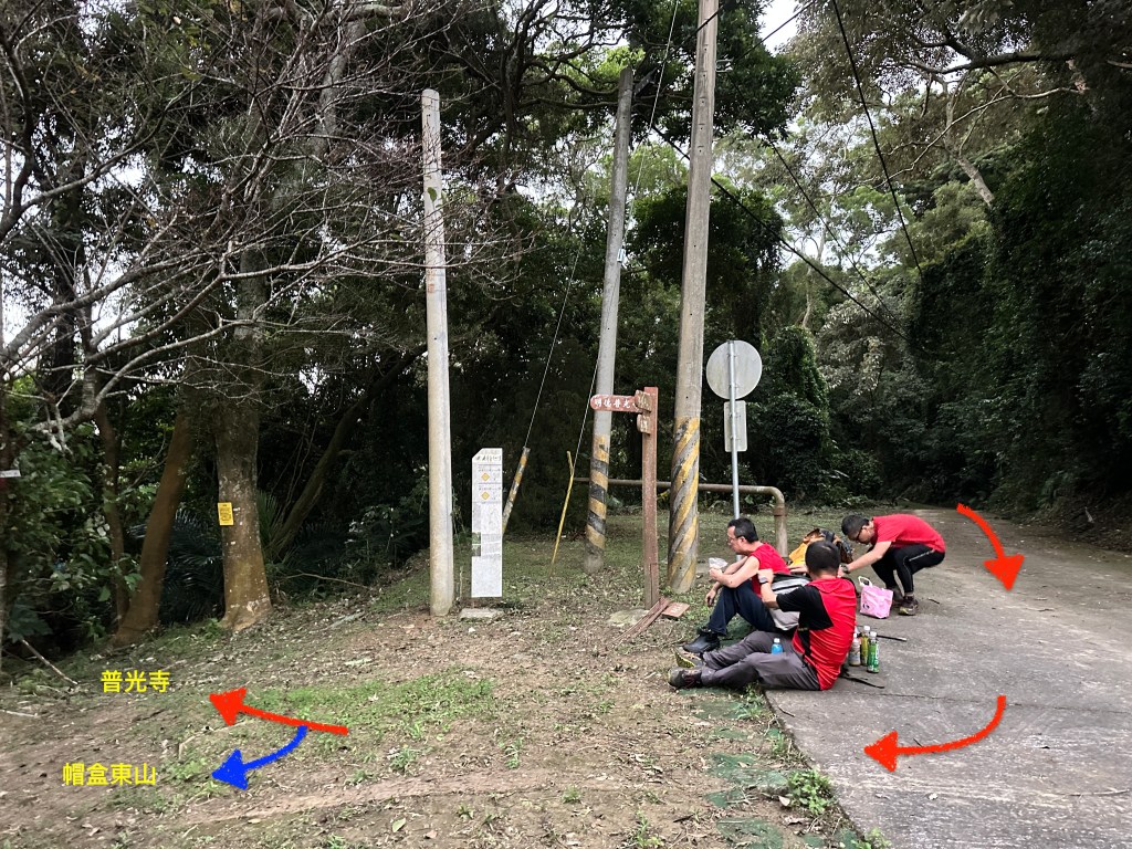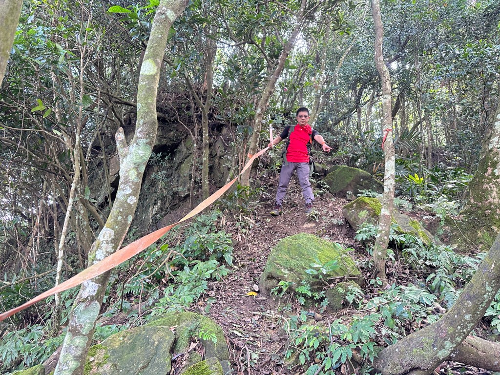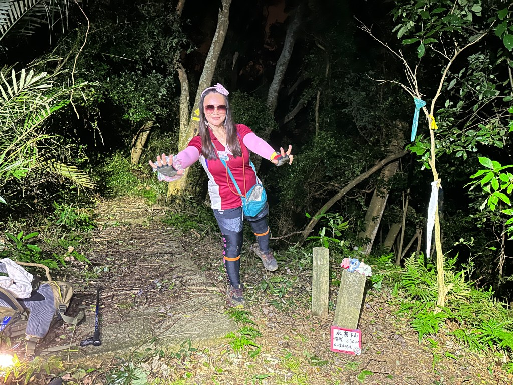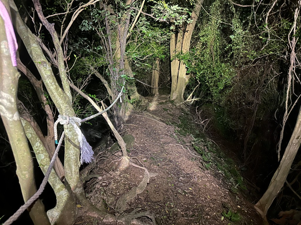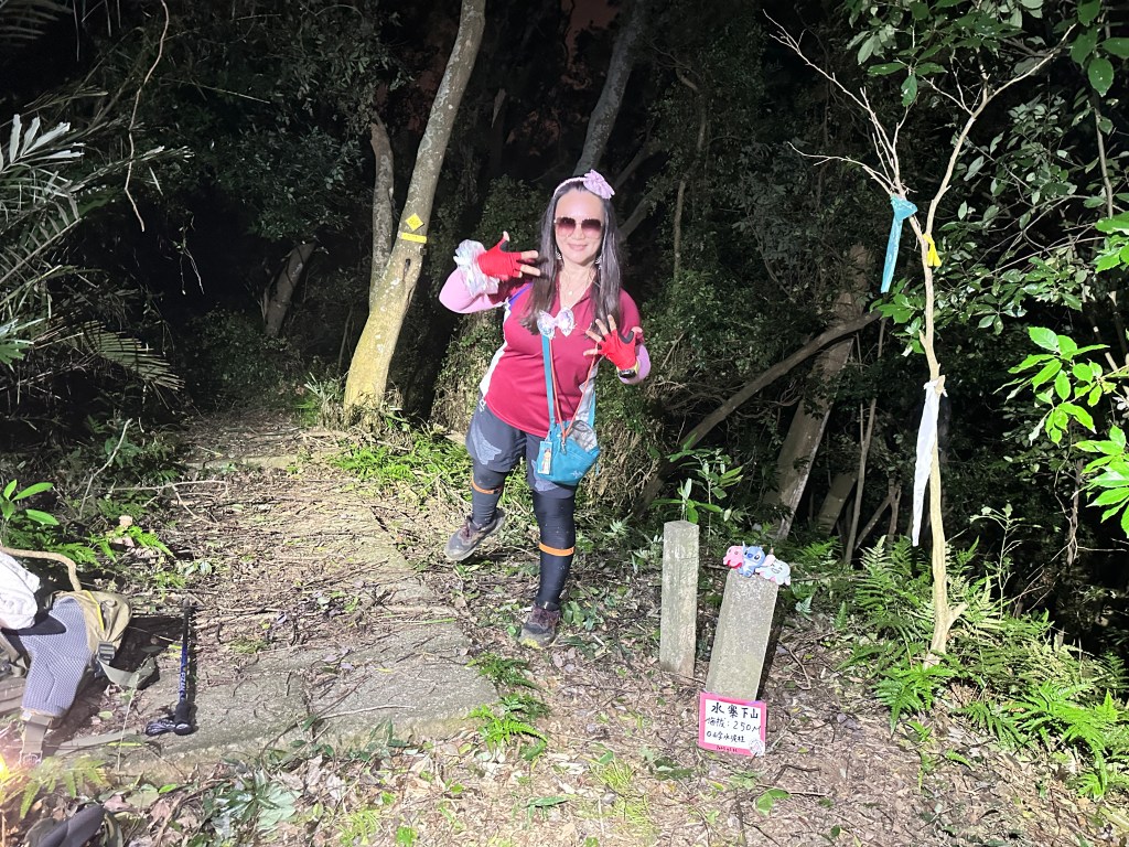 帽盒東山,這一座山,Smile與我去年(2023)走過,登頂前必須在100m距離裡直接陡上約50m,今天放棄!反正天色已黑,我們也在登山口前休息進食約20分鐘,接著,繼續依循樟之細路前往。