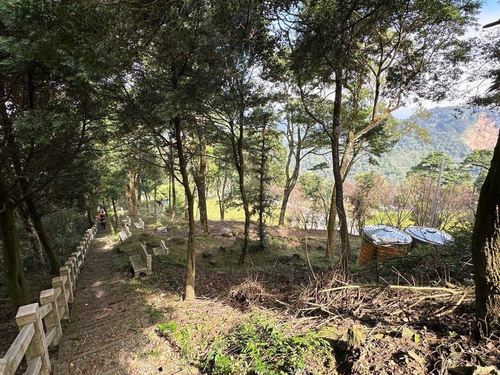 抵達普光寺前200m,路徑已經轉為木梯型態,到了普光寺時,或許我們四人的聲音不夠小聲,這時有一位女師父走出來跟我們閒聊了一下,聽到我們是由出磺坑過來,有些驚訝!女師父走入普光寺隨即出來,拿了一串小小的芭蕉給我們吃!真是美味!真是感謝!