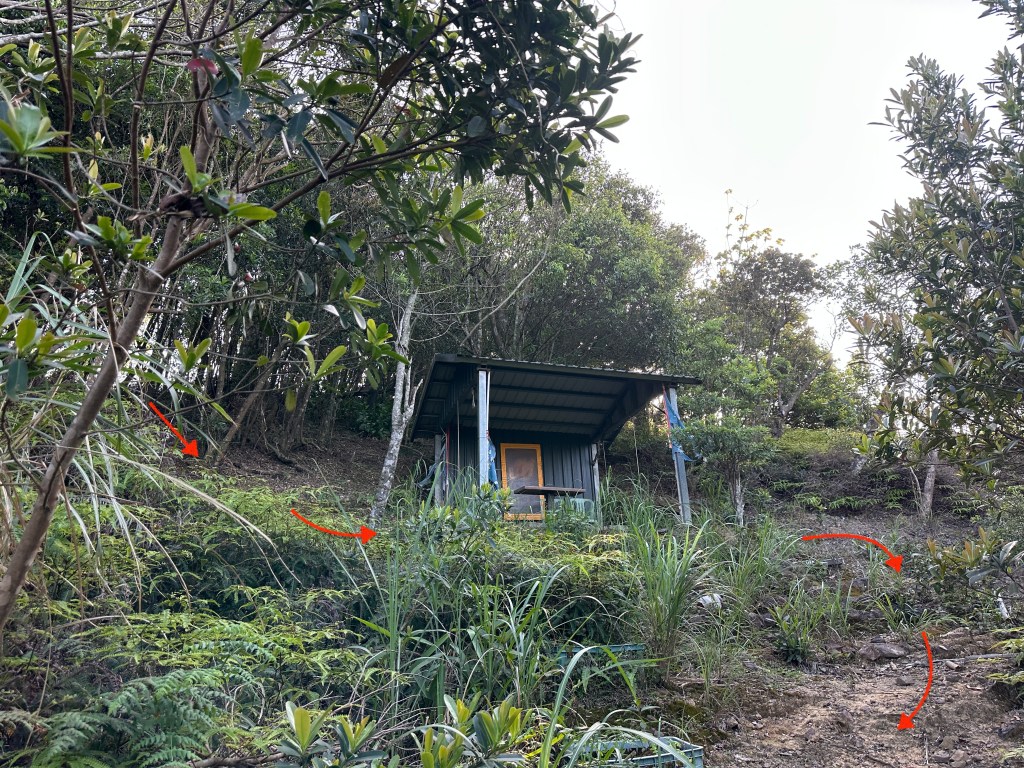 上圖:往右下走後,就會看到左側的鐵皮涼亭。