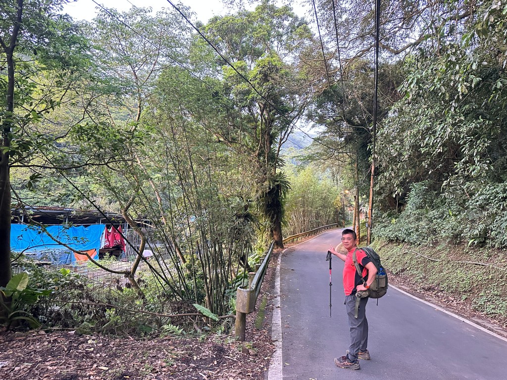 上圖:大伙開車過來,在北宜公路16.8K雙坑站之前的公路邊停好車,準備起登。07:22