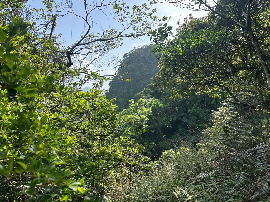 在中嶺山三角點這裡,繼續往前直下,可通往車閂寮九股山的各峰及隘寮遺址低至北水高程點,但單趟要3K往返要6K,這一趟下去再上來至少要3小時!這原來是Smile計畫要走的路線,但Pearl及Peter一聽我解說完,直接反應他倆要在中嶺山等我們!這時,Michael哥也反應不去!因此作罷,好險啊,這一趟下去再走上來,今天就要收工了!下一次有計畫的再來專走這一部份。