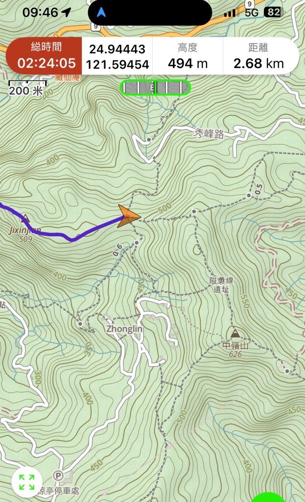 10:29-11:06 中嶺山(H626m)(總里程3.9K)
