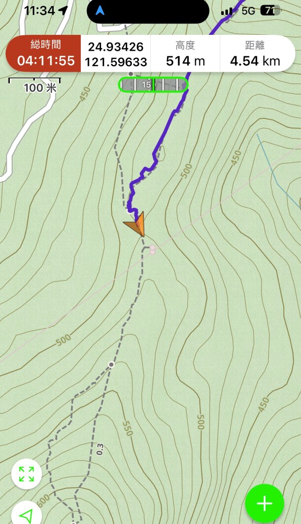 上圖:由Gaia GPS所記錄的等高線路徑圖。在手機上可以拉開放大來看
