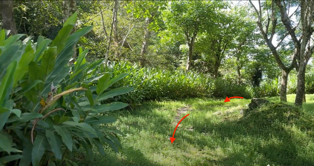 只好再度往右回到右側登山口而上,陡上中追上了Smile及Allen,兩人也正對著手機正在尋找正確路徑?我們三人也加入,看到離線地圖總覺得路徑在左側,我一人先往左側偏移試試?結果往左橫跨約30公尺,果然找到原始路徑!事後由當時拍攝的登山口影片來看,感覺上一開始Allen及Smile一入登山口就往右側好走路線其實就已經走偏了!實際上應該往左有不太明顯的路徑方向陡上!