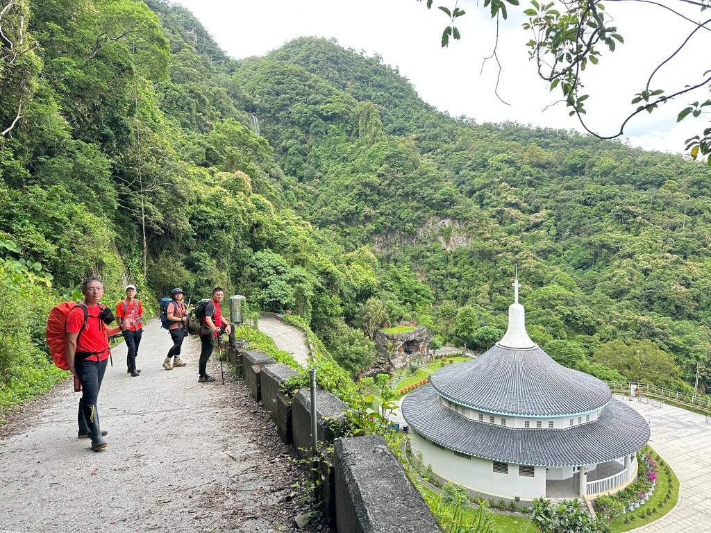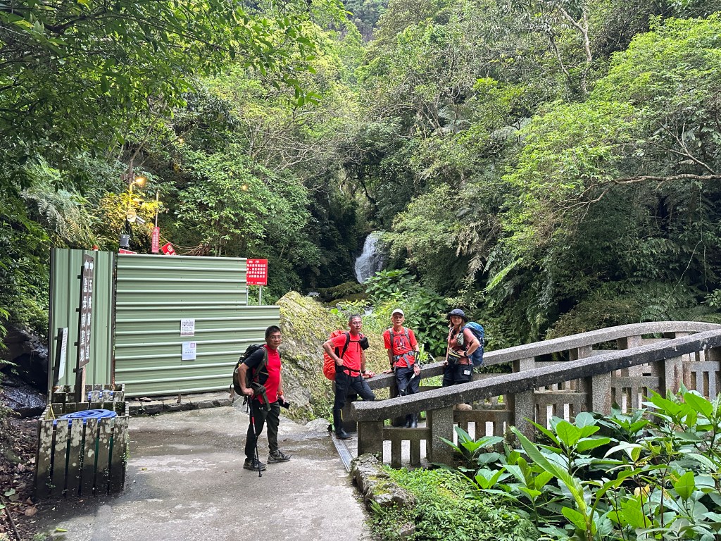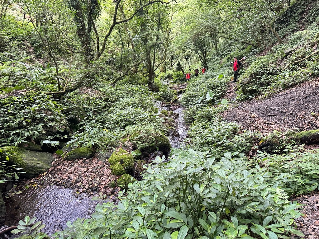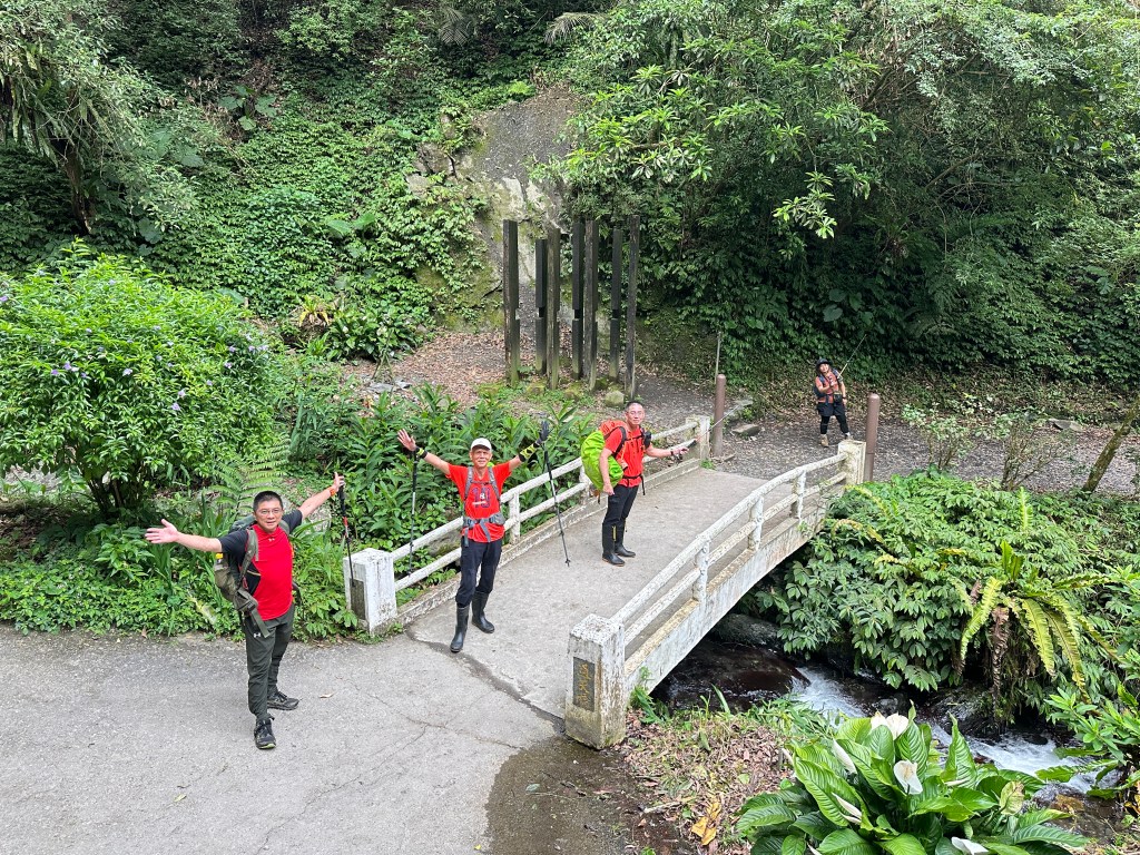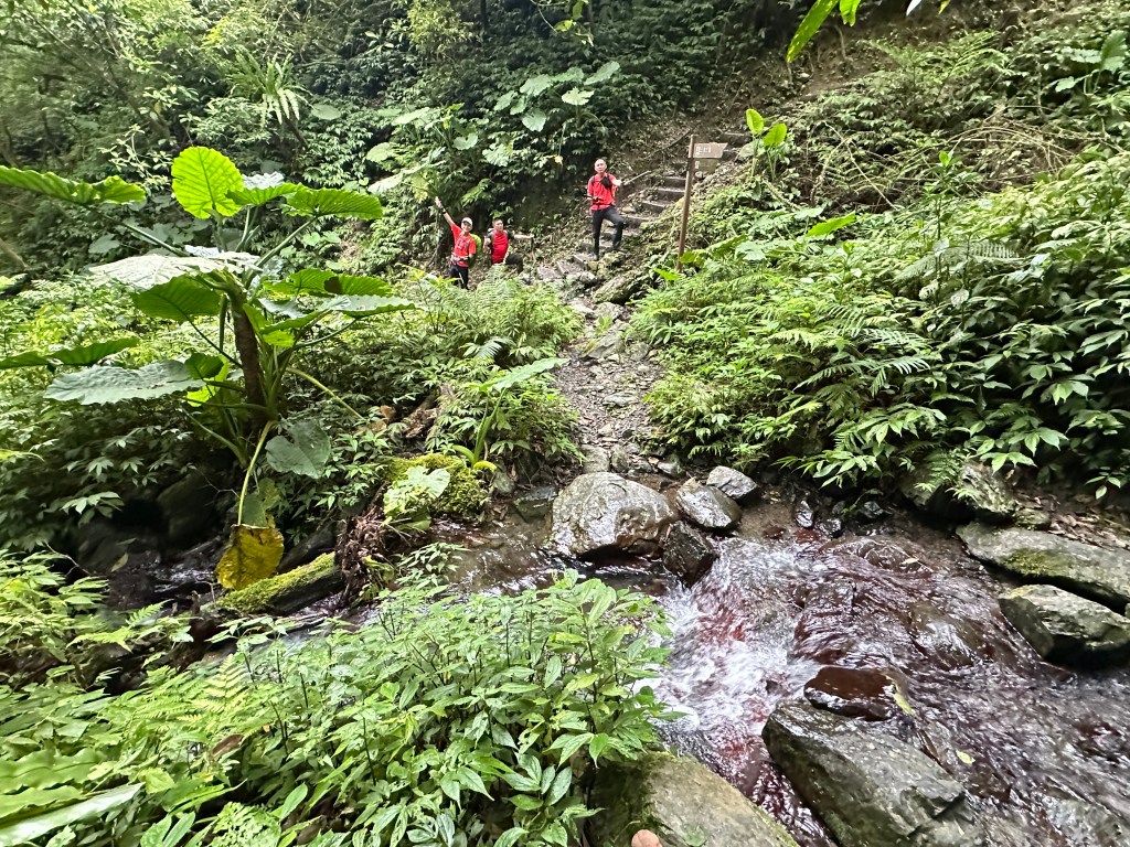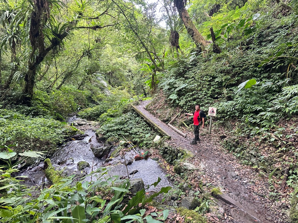 隨著巴唐古道陡下越靠近接上聖母登山步道前,越靠近過溪水的步道變得比較濕滑。接著,五人在通天橋涼亭休息盥洗如廁一下,再走4K經過聖母堂、五峰旗風景區,回到了遊客中心!完成今日杳無人跡,沒有抹茶的抹茶路線O型!