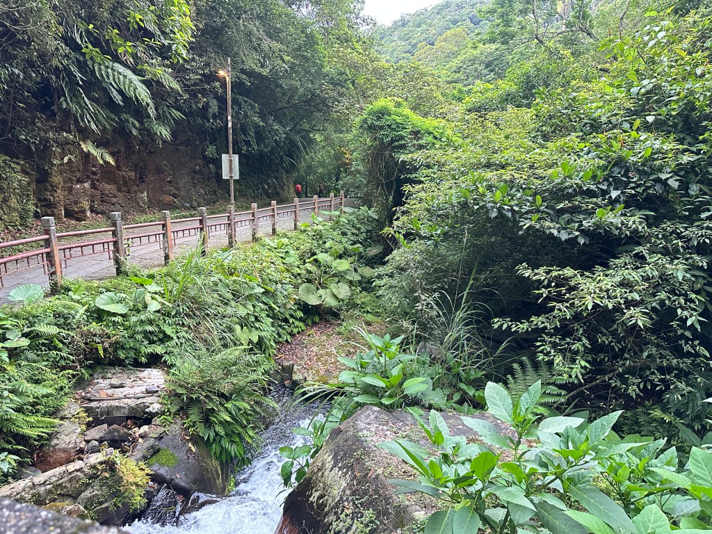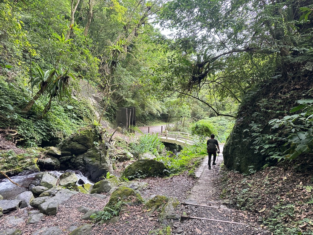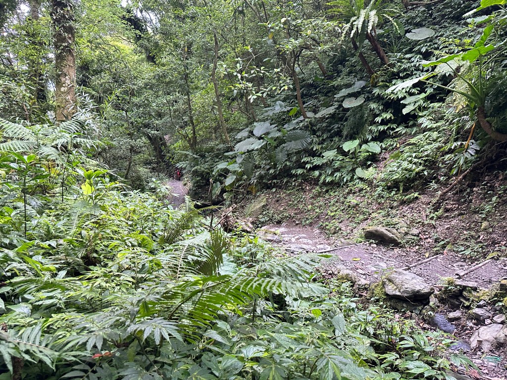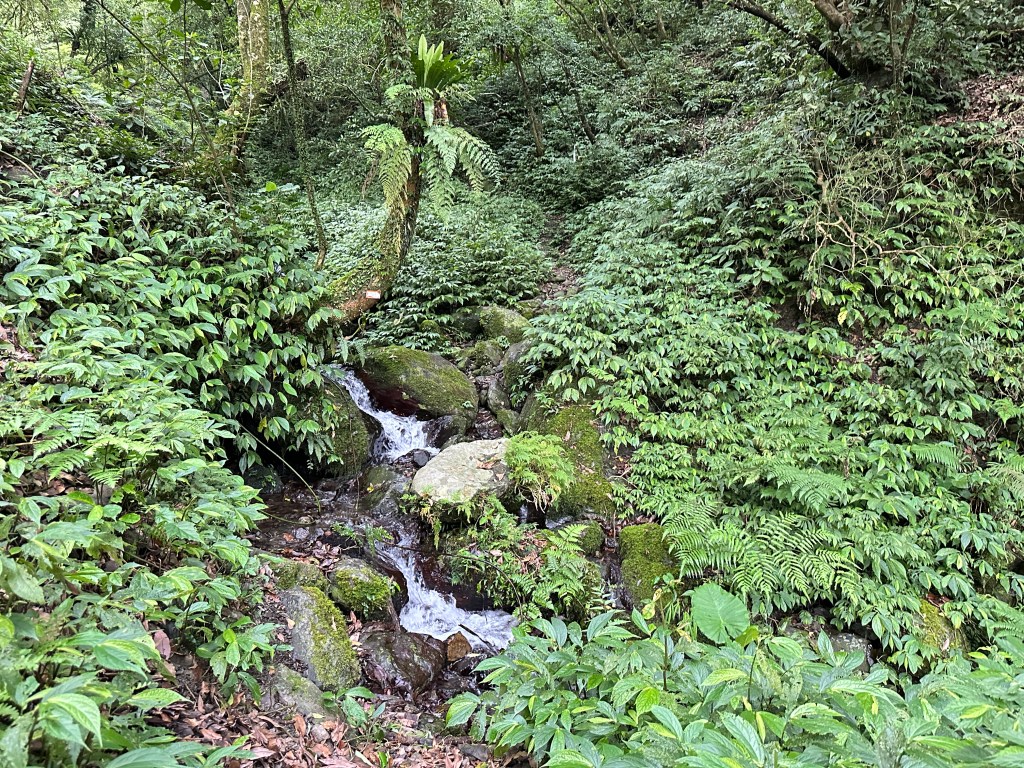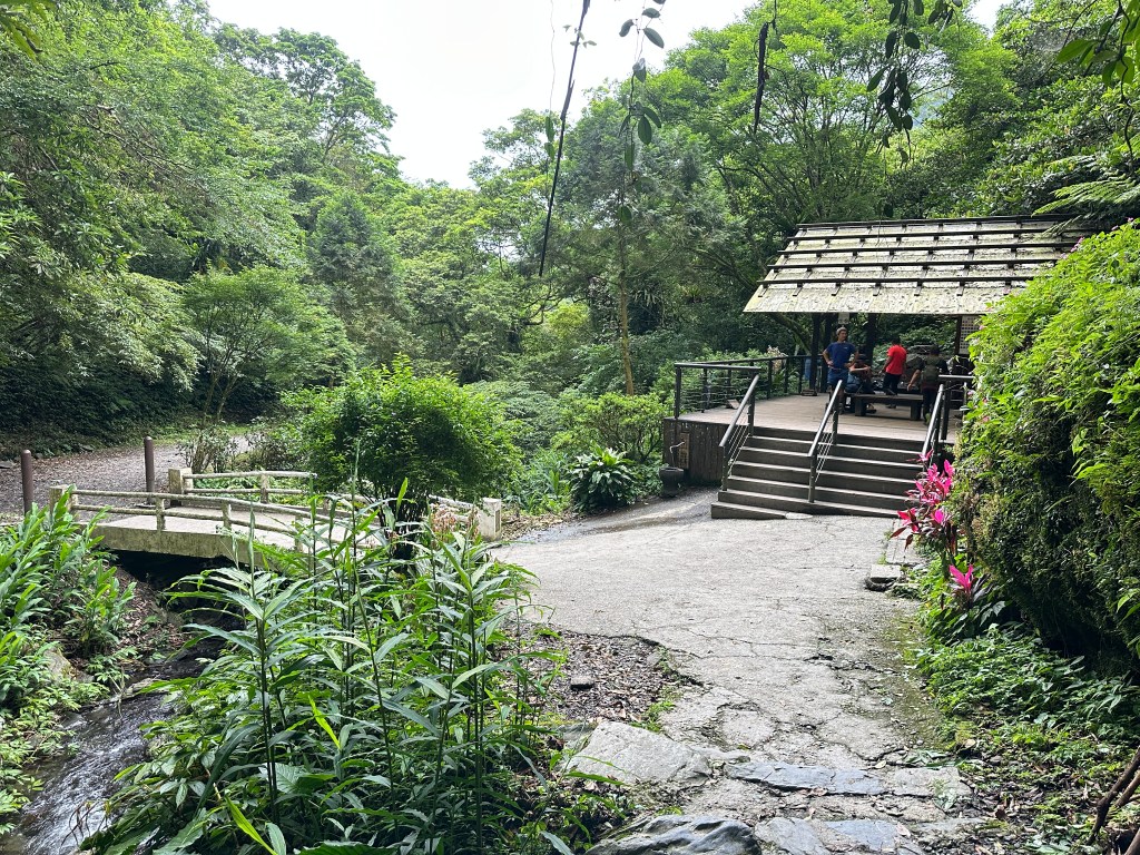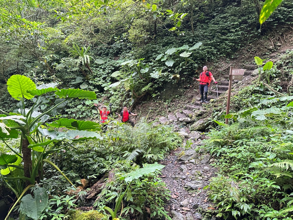 隨著巴唐古道陡下越靠近接上聖母登山步道前,越靠近過溪水的步道變得比較濕滑。接著,五人在通天橋涼亭休息盥洗如廁一下,再走4K經過聖母堂、五峰旗風景區,回到了遊客中心!完成今日杳無人跡,沒有抹茶的抹茶路線O型!