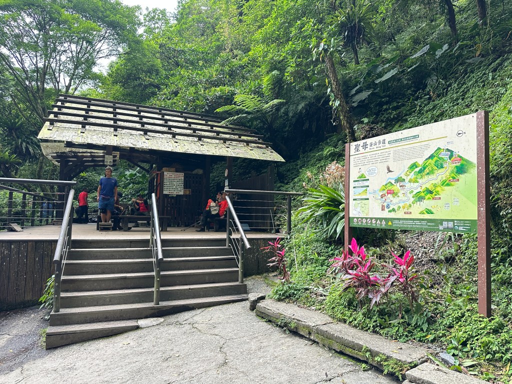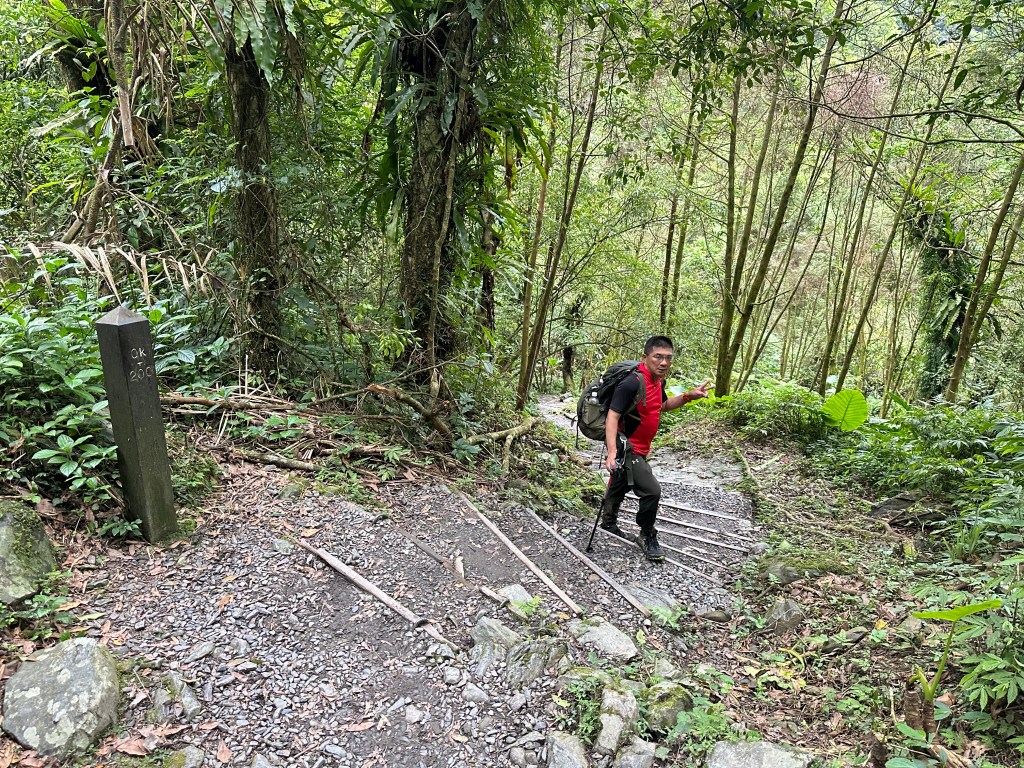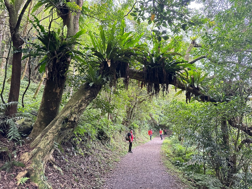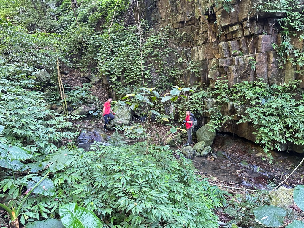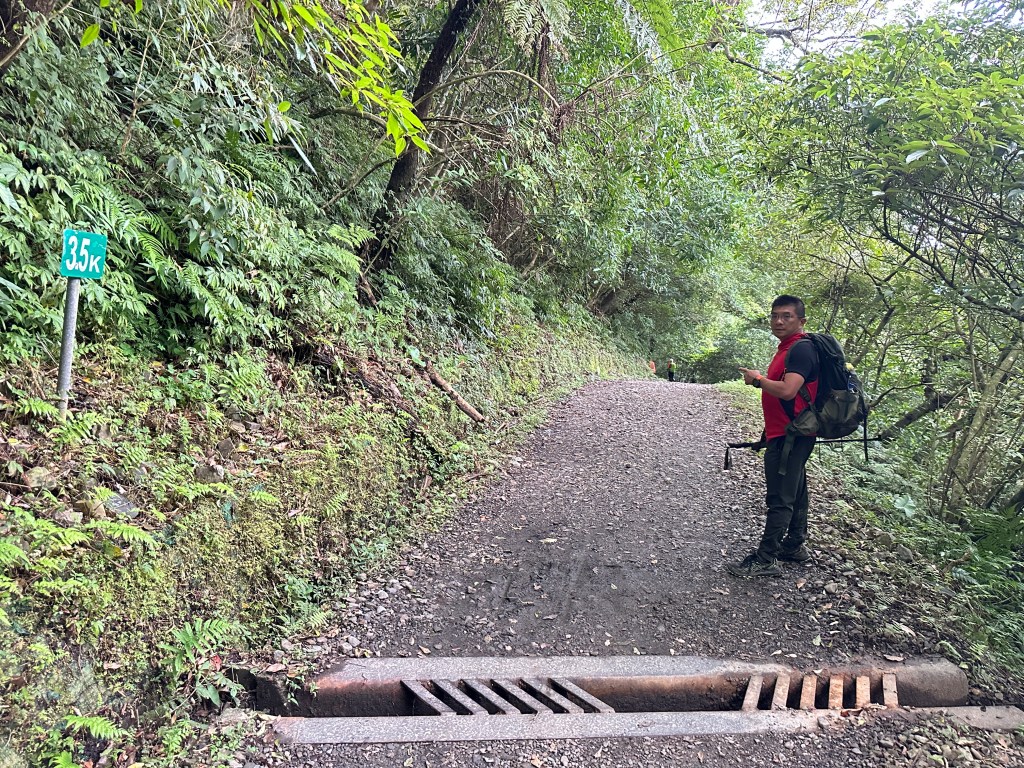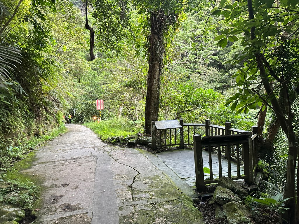 隨著巴唐古道陡下越靠近接上聖母登山步道前,越靠近過溪水的步道變得比較濕滑。接著,五人在通天橋涼亭休息盥洗如廁一下,再走4K經過聖母堂、五峰旗風景區,回到了遊客中心!完成今日杳無人跡,沒有抹茶的抹茶路線O型!