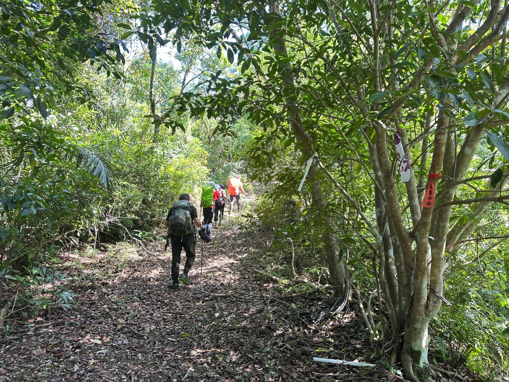 因為這一天由五峰旗山到竹仔崙山之間的山徑剛被我們整理過,或許近期來走,路徑、布條都會非常明顯!