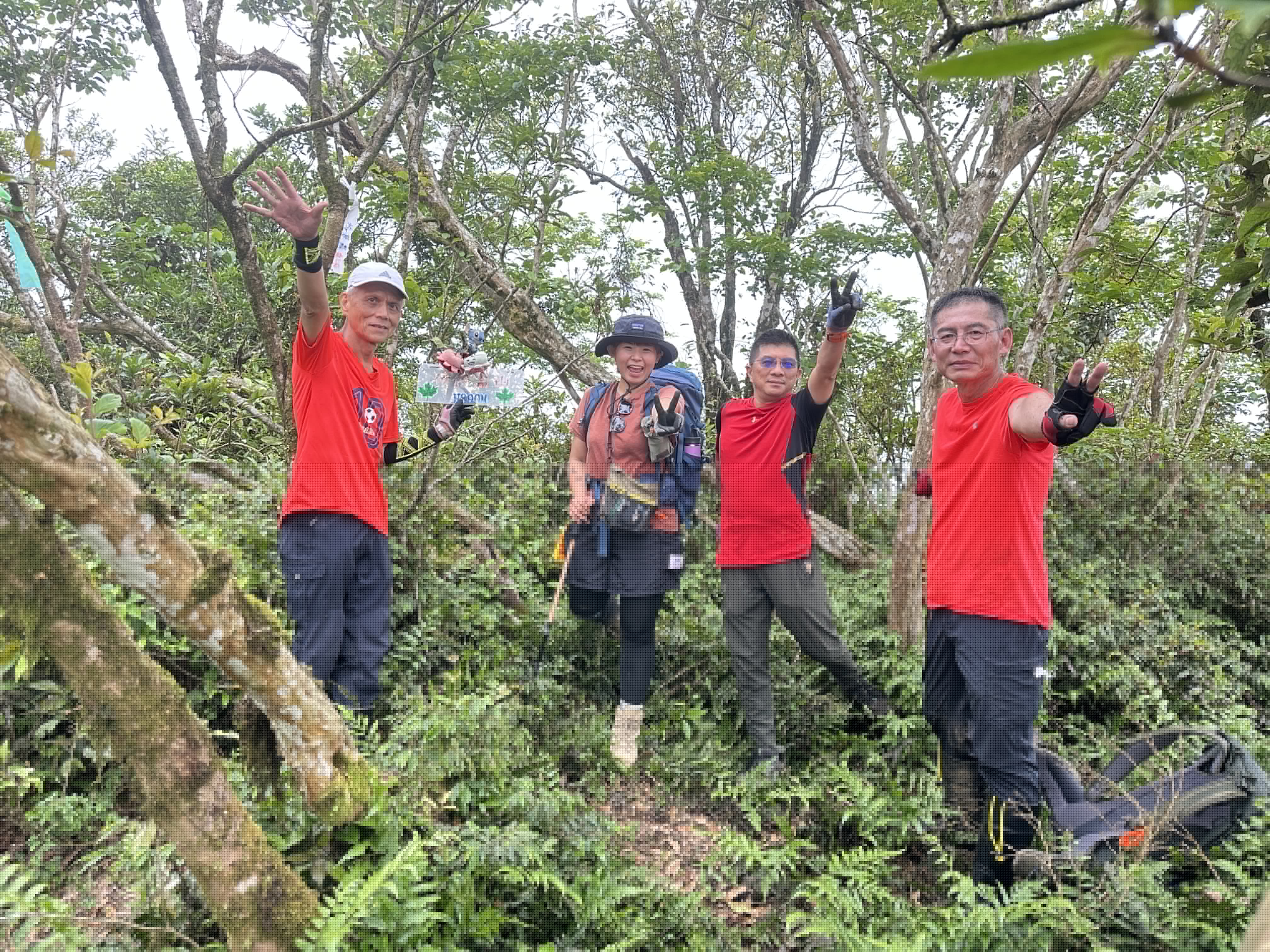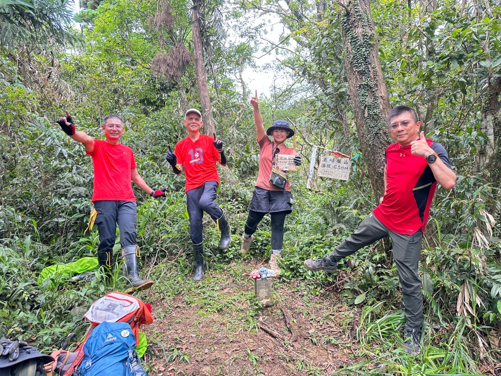 投影片:五峰旗山!左起-Allen、Michael、Eva、Gosen。