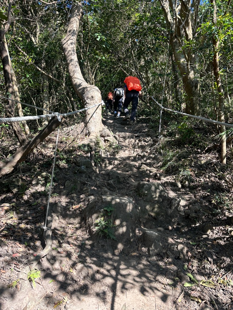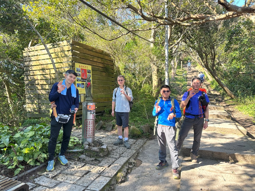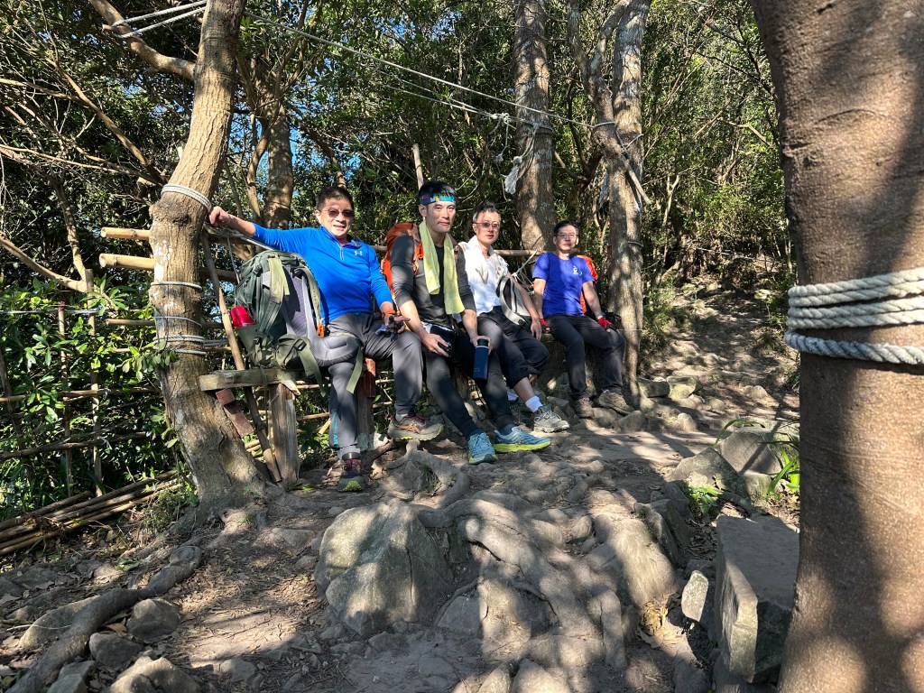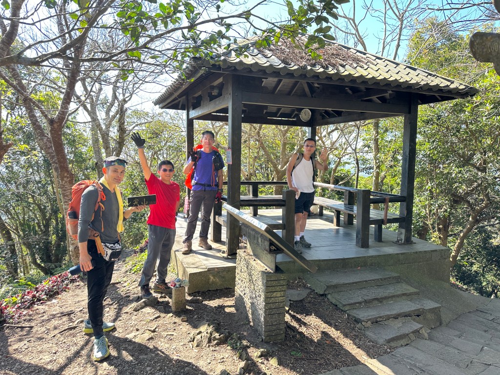 由小北插登山口起登,一開始就是角度超大的一路陡上,一直陡上到鷹仔尖!眾人在這裡等待還在一路唉唉叫的Smile,就這樣的等待時間,經過鷹仔尖涼亭的山友就經過了好幾位,就可以感受到觀音山的登山人潮不少。