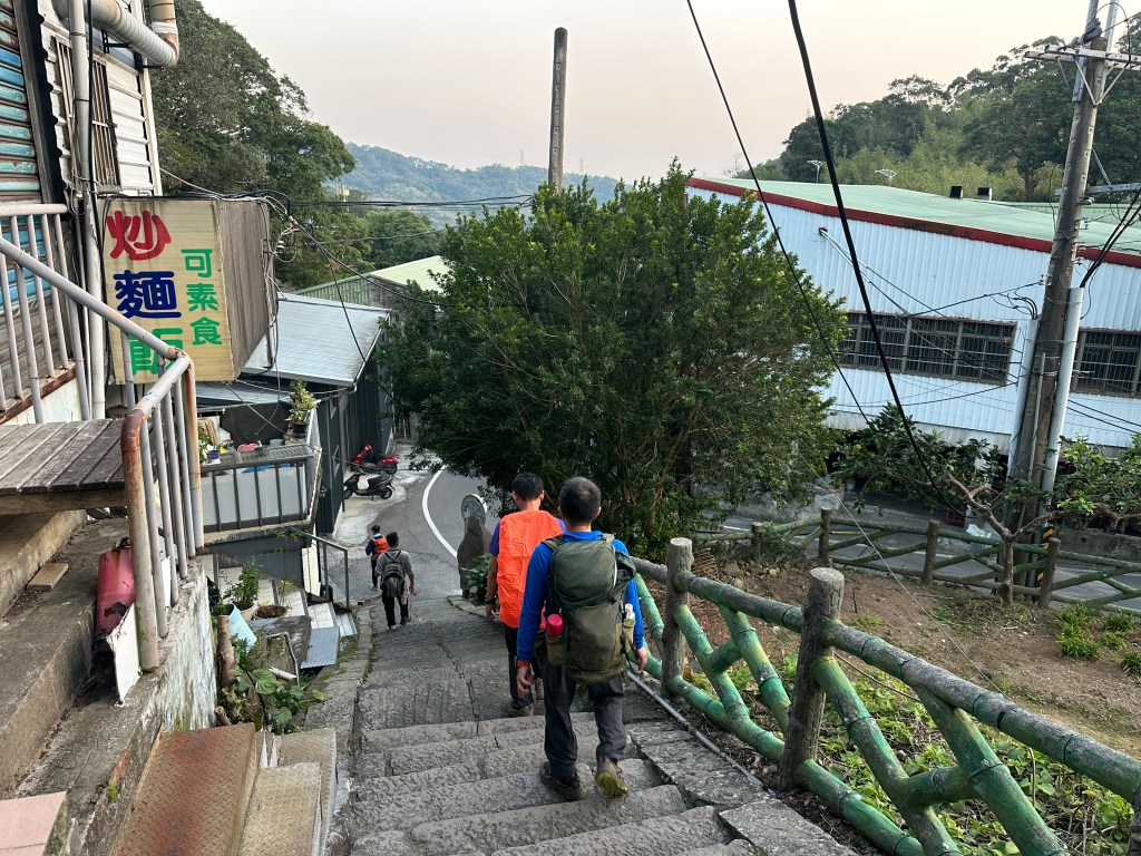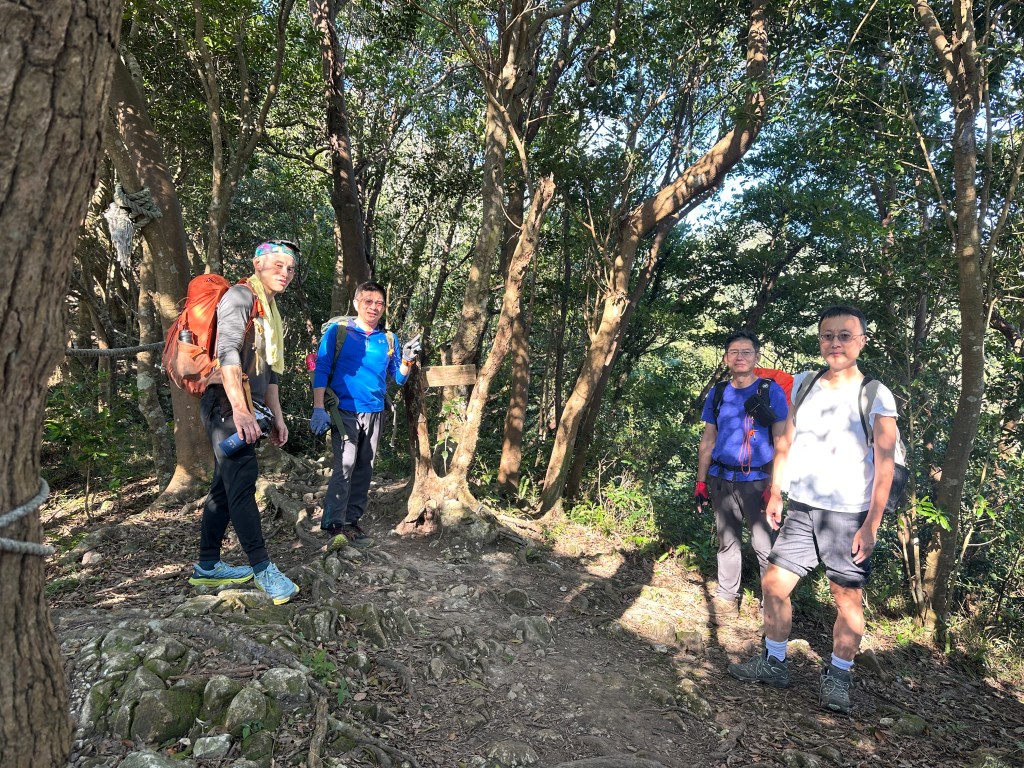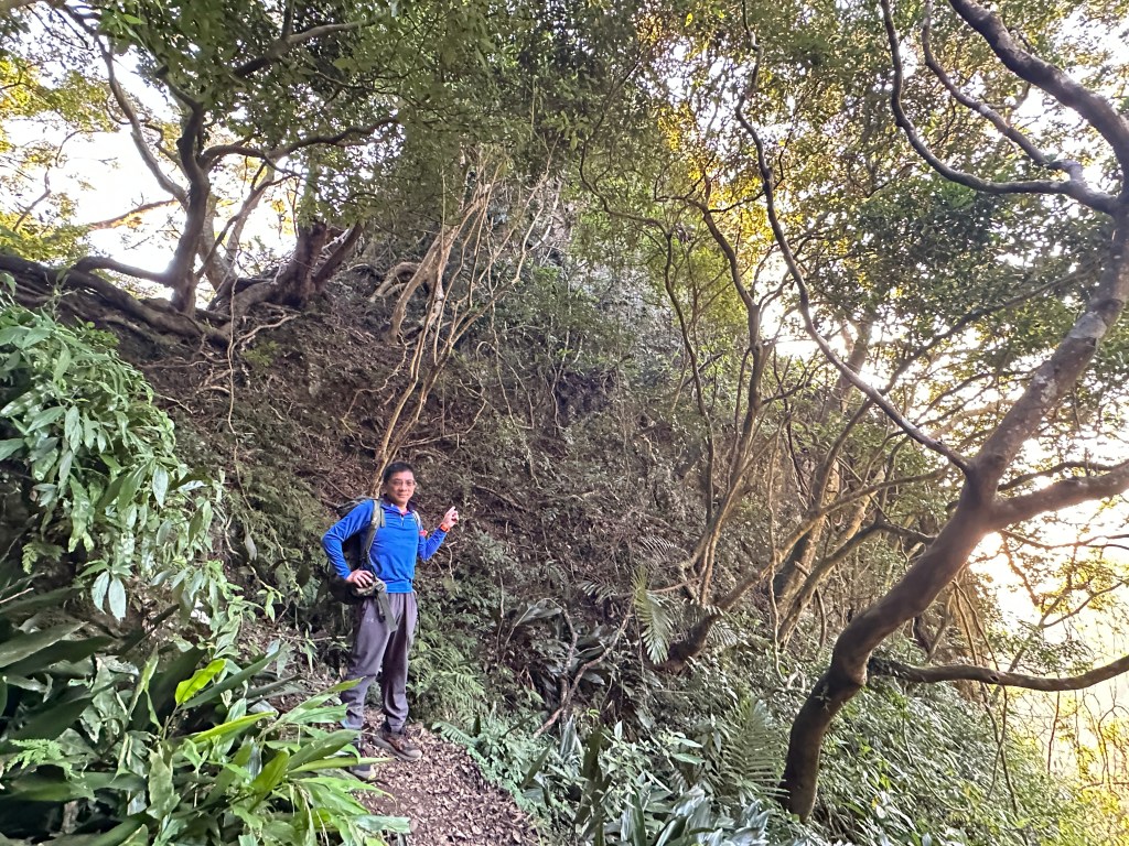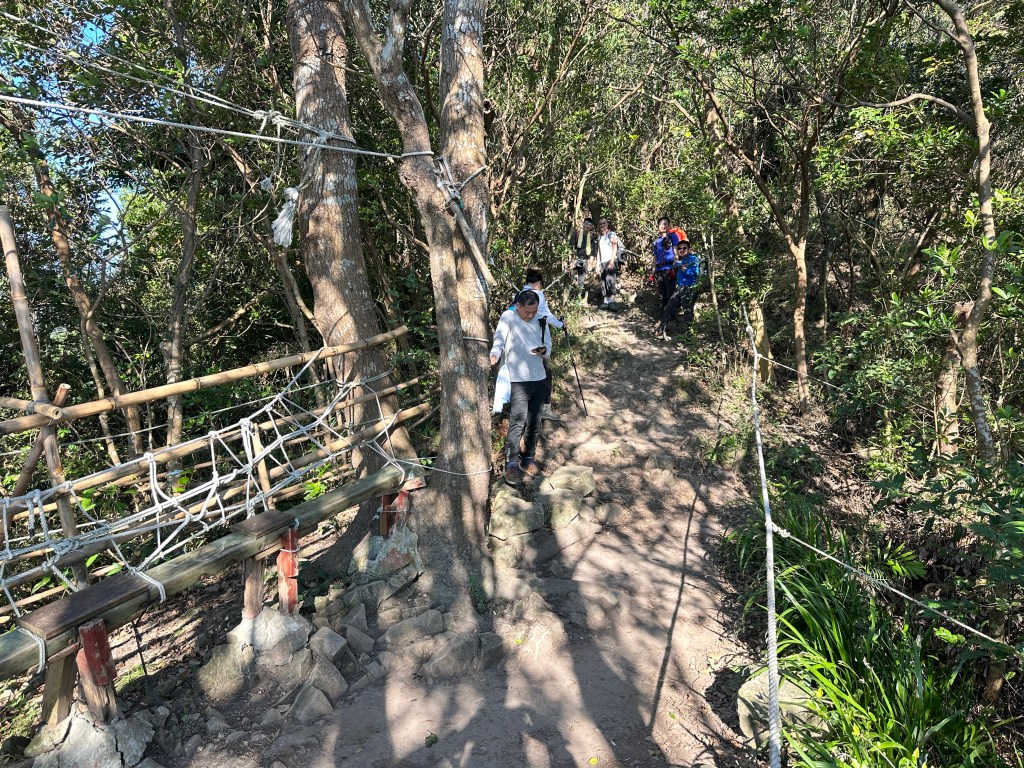 由小北插登山口起登,一開始就是角度超大的一路陡上,一直陡上到鷹仔尖!眾人在這裡等待還在一路唉唉叫的Smile,就這樣的等待時間,經過鷹仔尖涼亭的山友就經過了好幾位,就可以感受到觀音山的登山人潮不少。