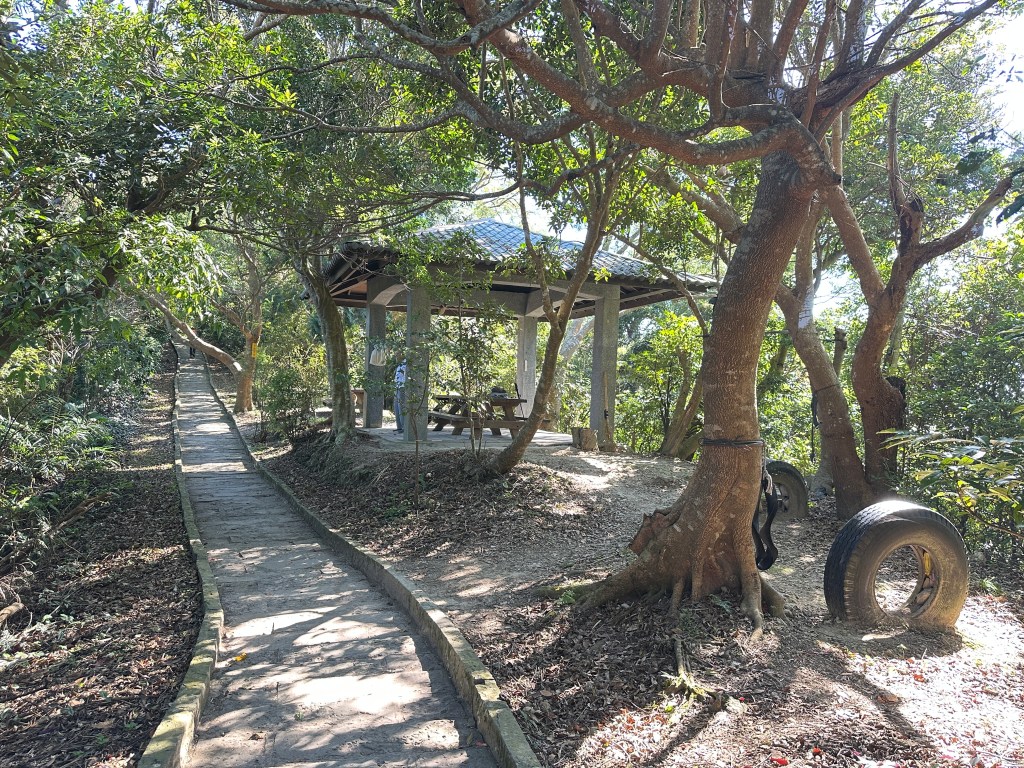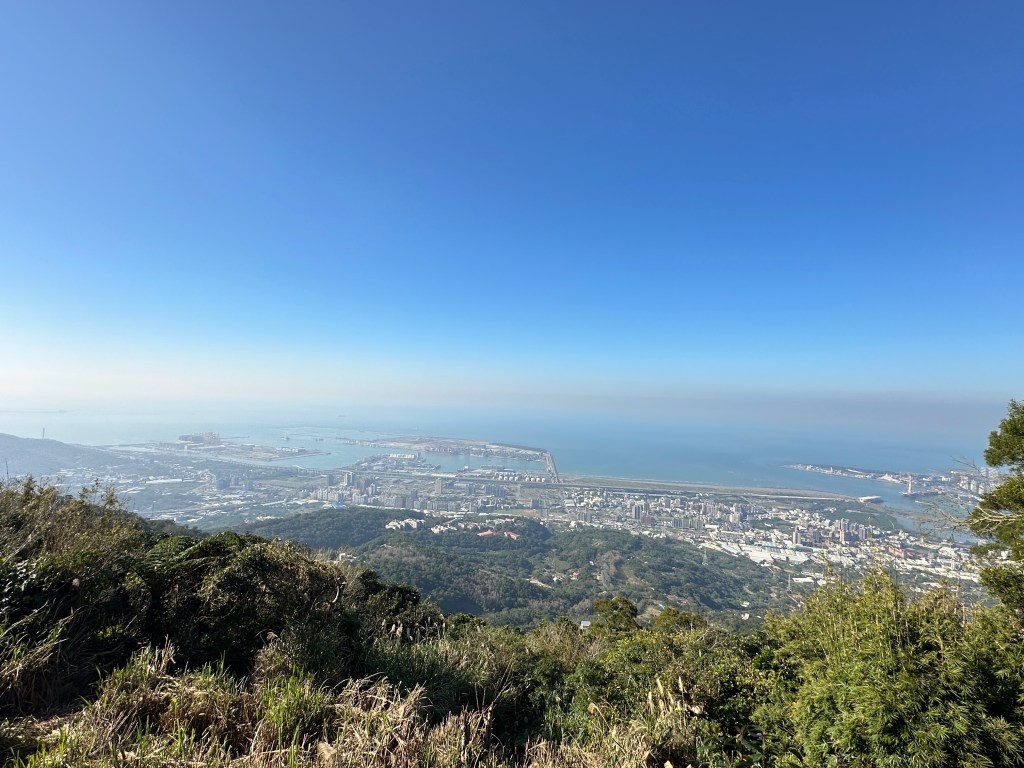 我們在硬漢嶺這裡觀景休息吃午餐,沒來過硬漢嶺的朋友一定要來一次!找天氣好的時候上來就可以看到海闊天空的迷人大景!我們在這裡休息了約45分鐘,就沿著硬漢嶺步道一路陡下,150公尺後來到眾樂園/停機坪,旁邊有廁所可用!稍微看一下離線地圖的軌跡線,就會發現硬姐嶺就在周邊,往西側方向繼續前行不到100公尺就是觀看台北港的密境點!