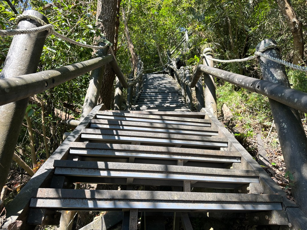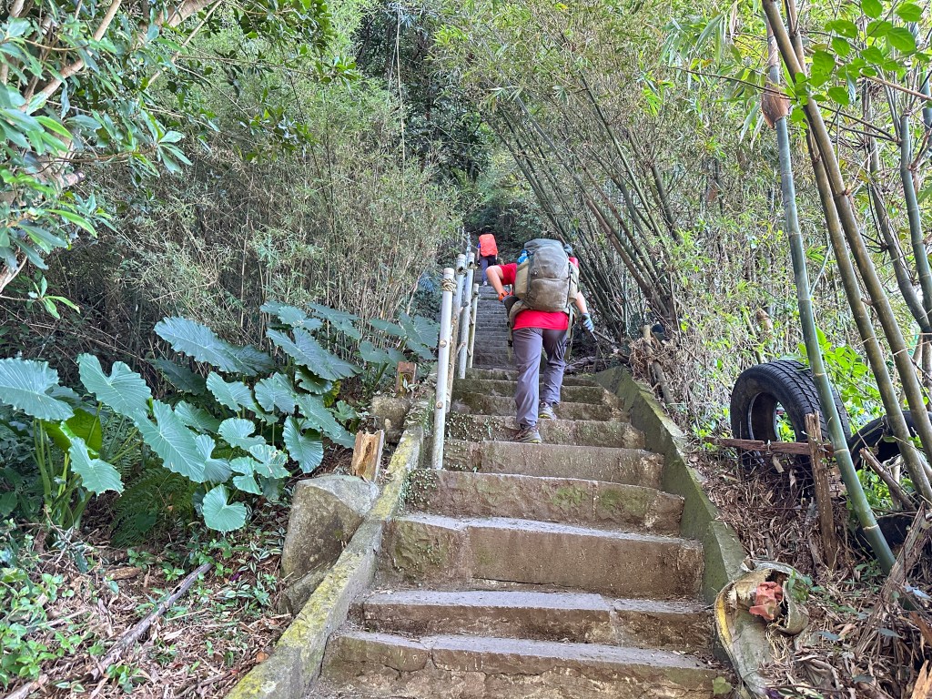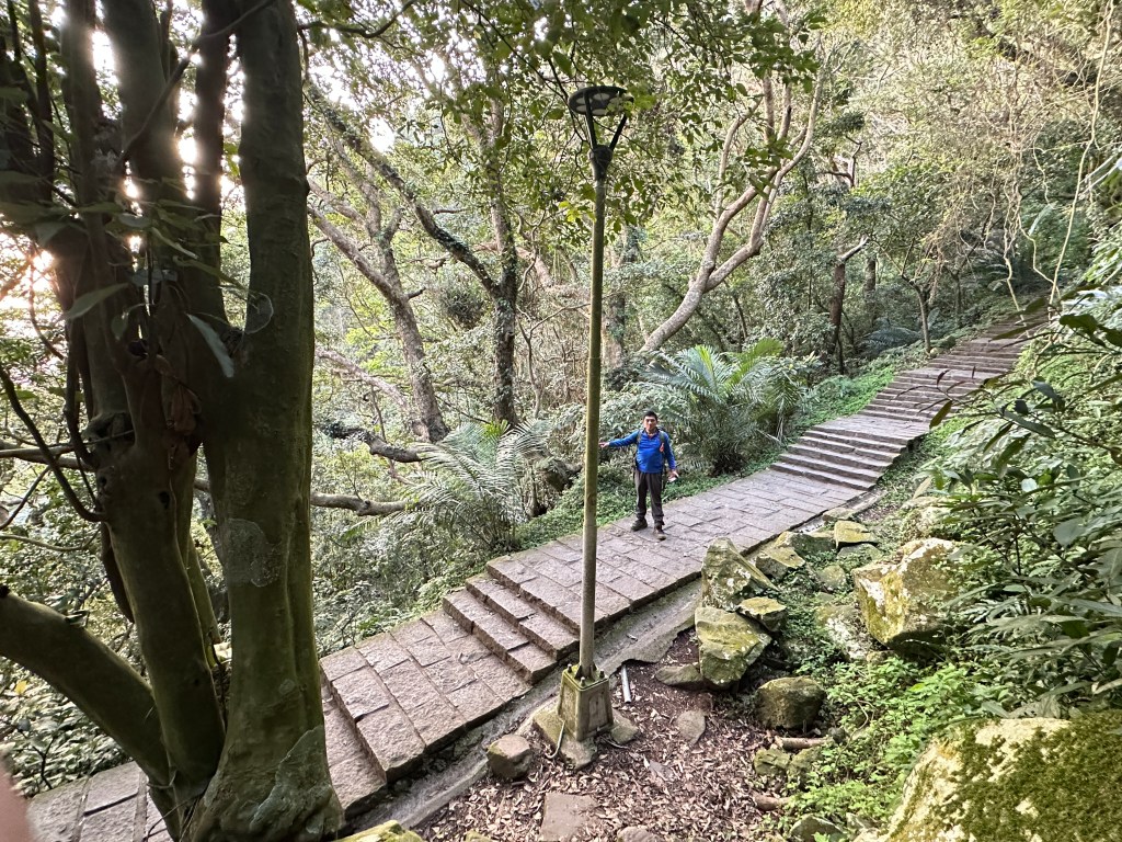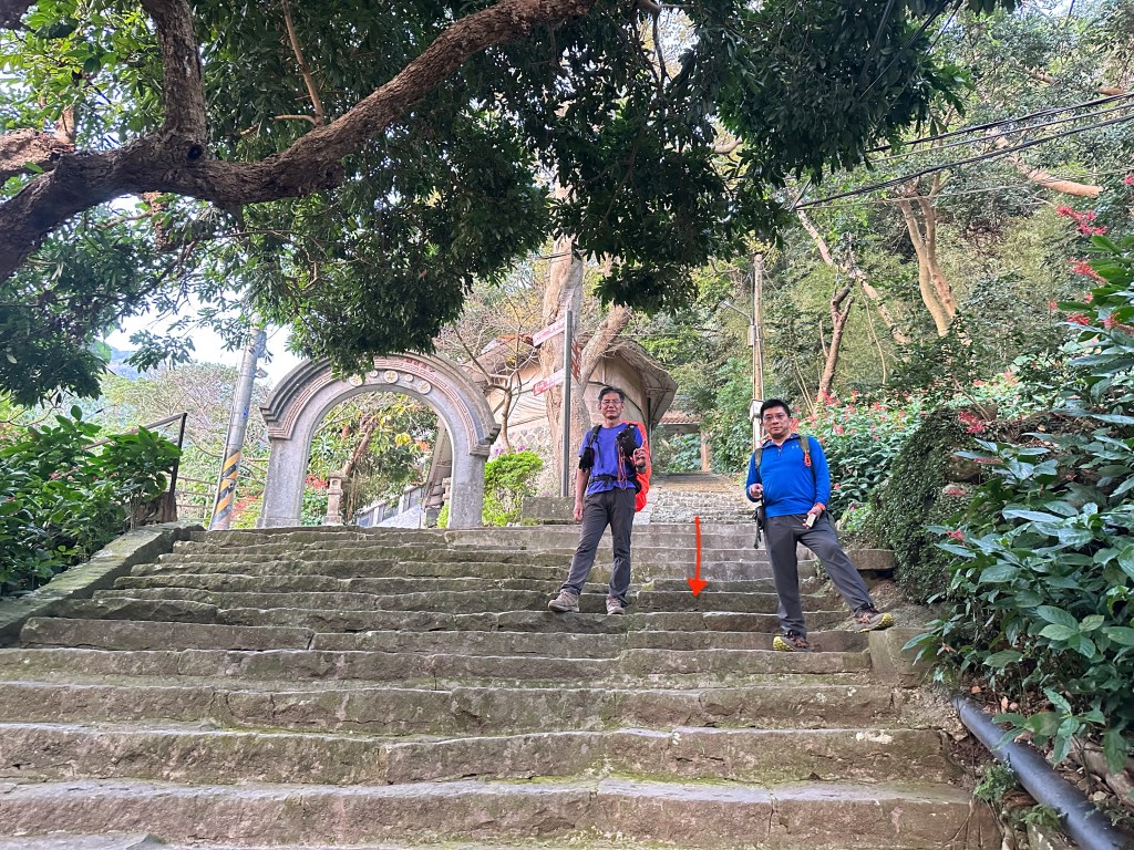 離開龍女岩,再度拉回到硬漢嶺步道,一路陡下來到凌雲禪寺,右轉進入福隆山步道一路沿著階梯陡下接上凌雲路三段,續走不到100公尺即回到鴻興土雞城。