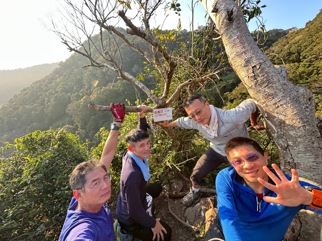 投影片:回到尖山涼亭與三角點合照!今天的第四峰。